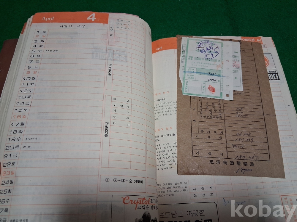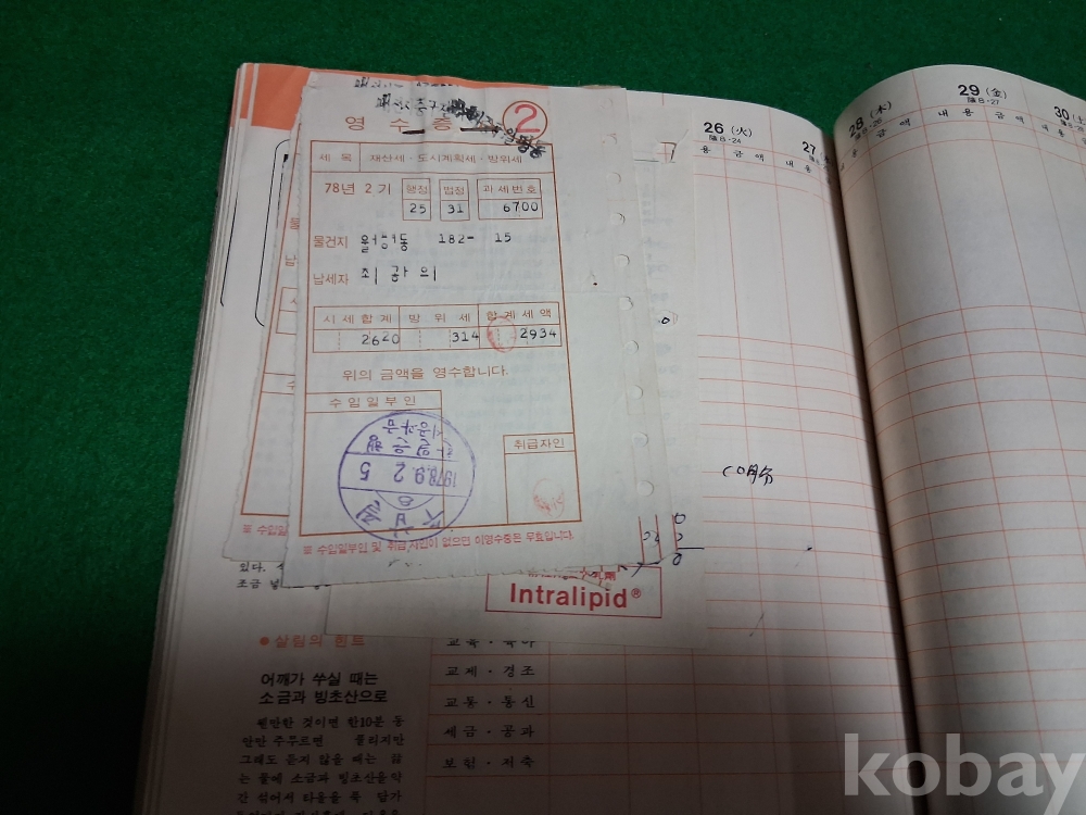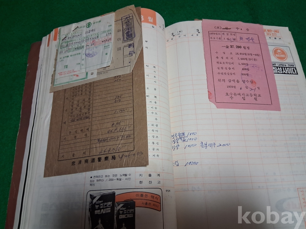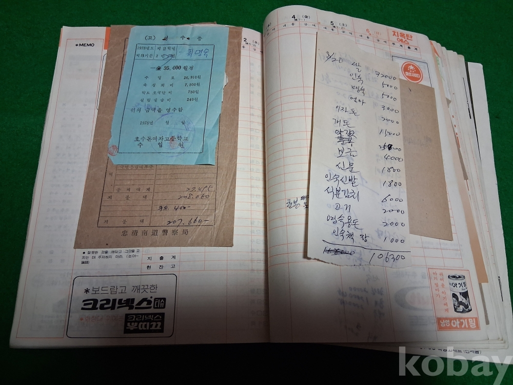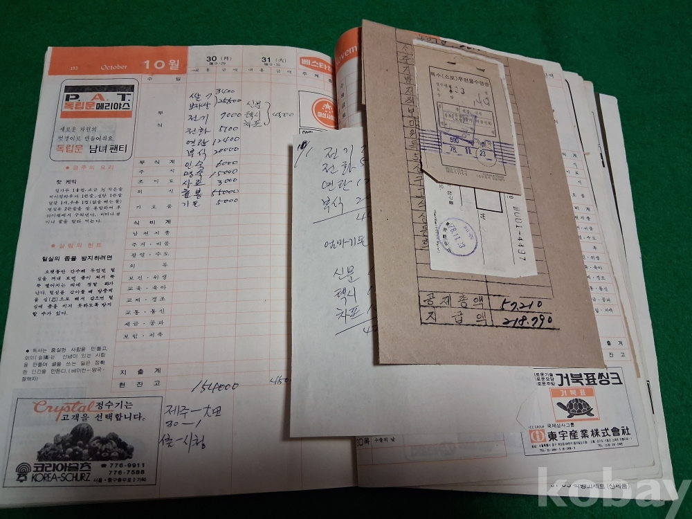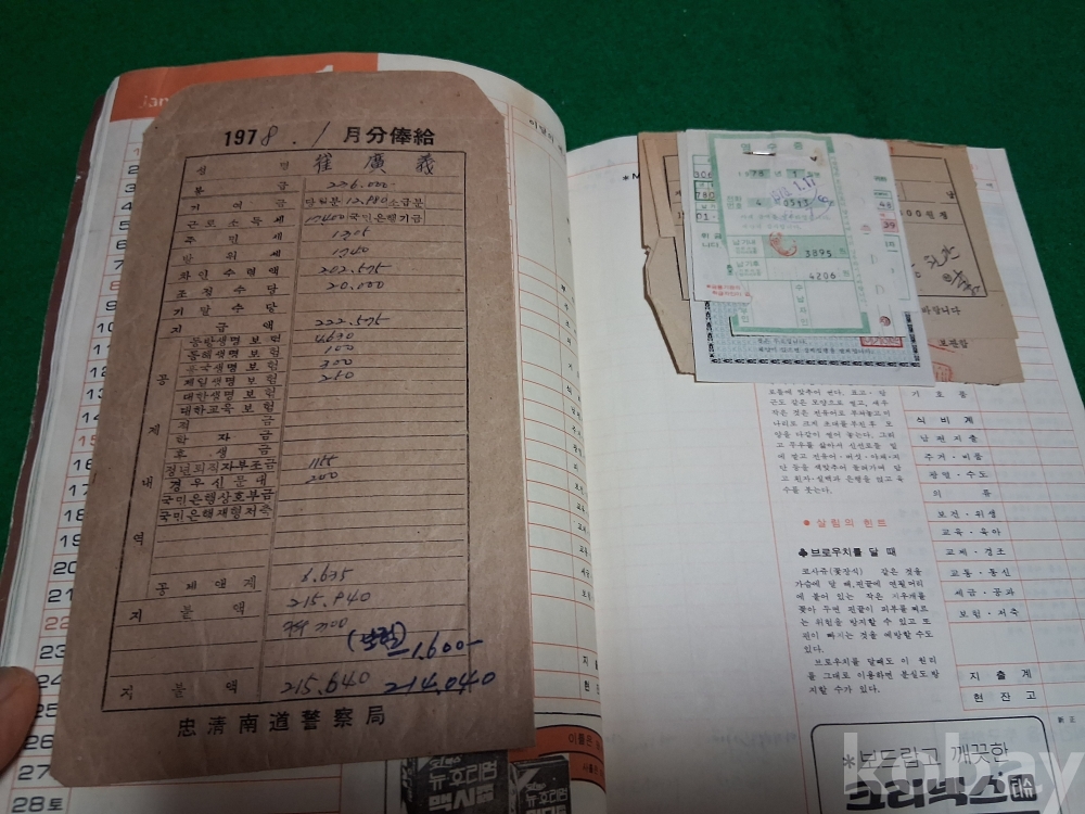 70년대 어느 경찰간부공무원의 부인께서 작성한 가계부(월급명세서, 전기요금, 전화요금,한국일보 구독영수증,딸 여고등록금 등)
