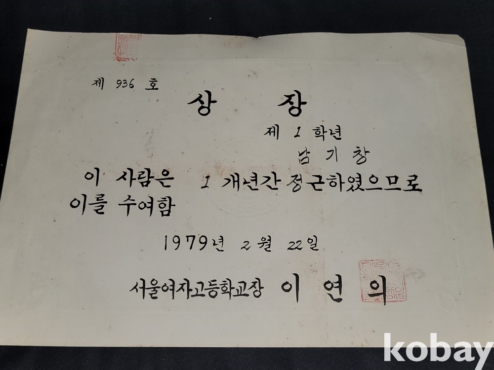빈티지 세월 감이 느껴지는 희귀한 1978년 홍익대학교사범대학부속여자중학교 졸업장, 1979년 서울여자고등학교 상장 등 2종 일괄입니다.