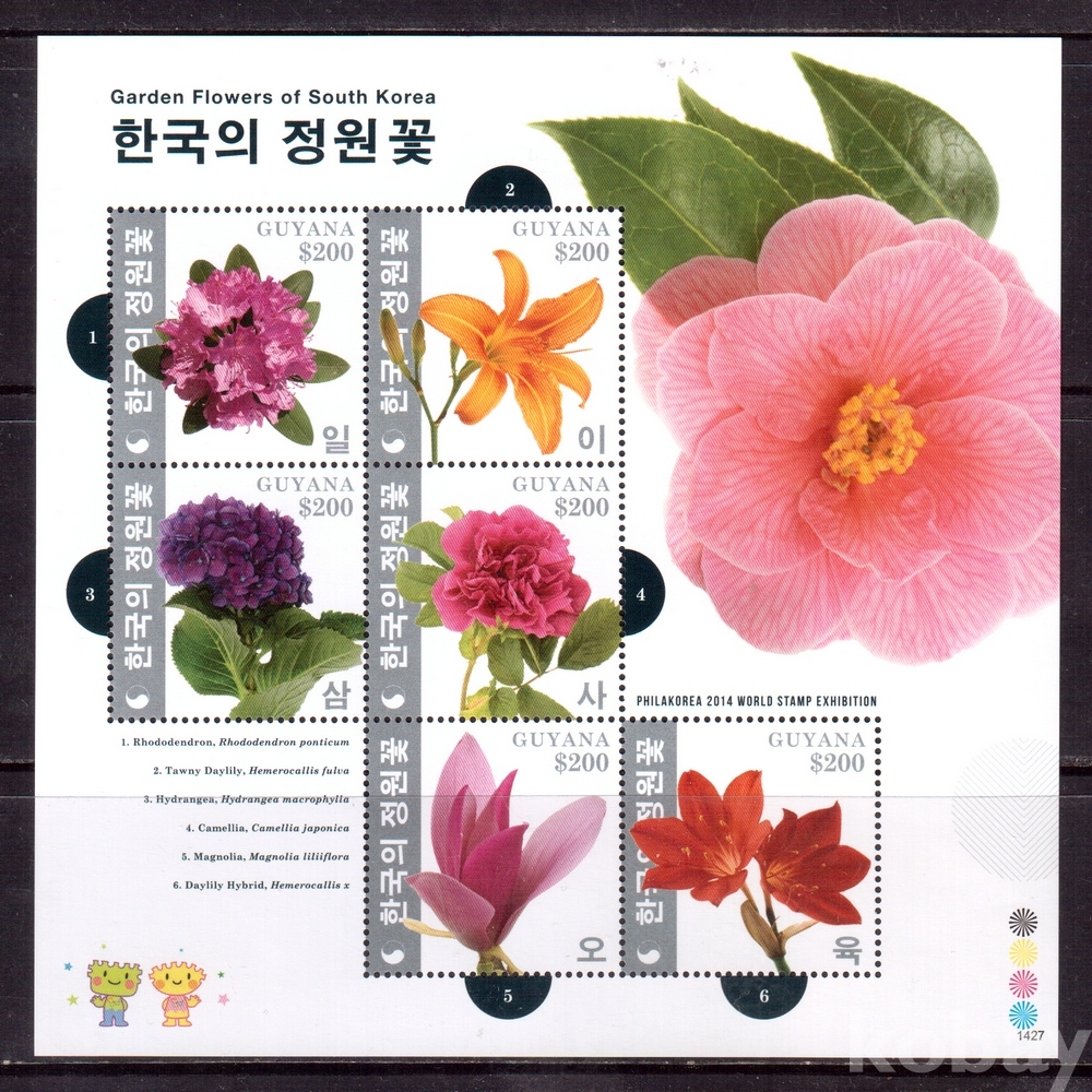 (필라코리아) Guyana(가이아나) 2014 필라코리아 (한국의 정원꽃) sheet of 6 MNH