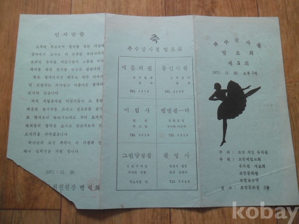 1971년 제5회 추수감사절 발표회(포항제일유치원)