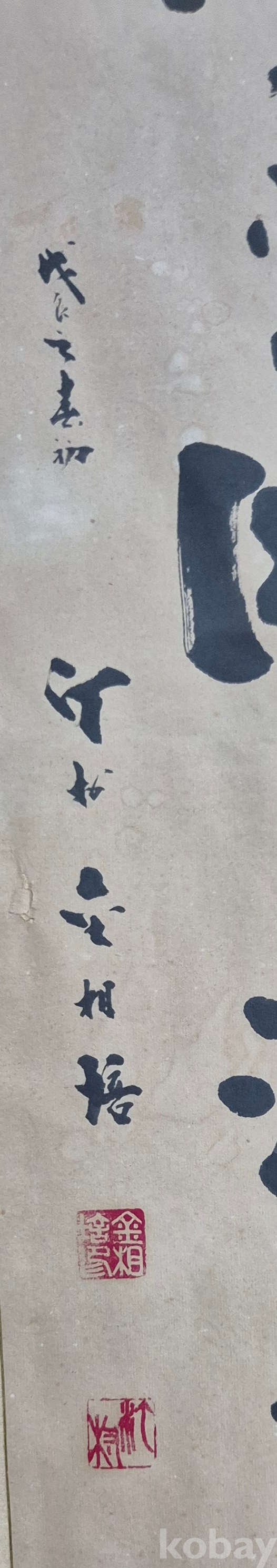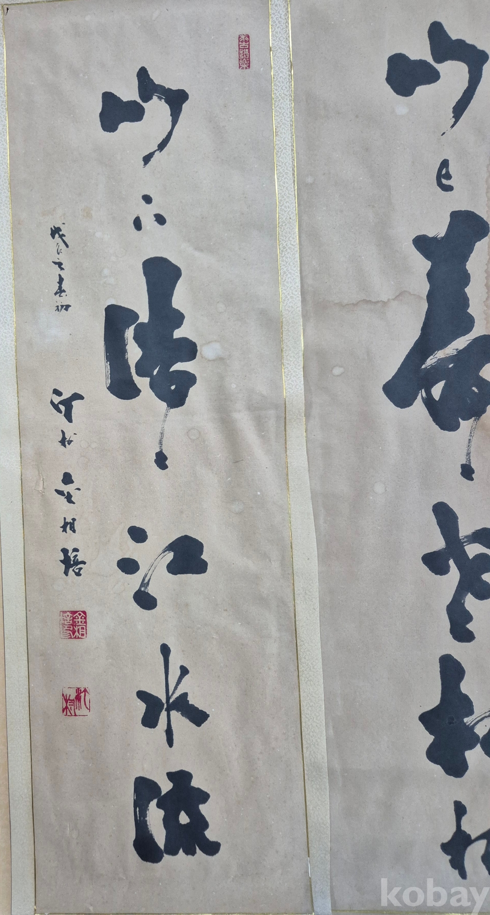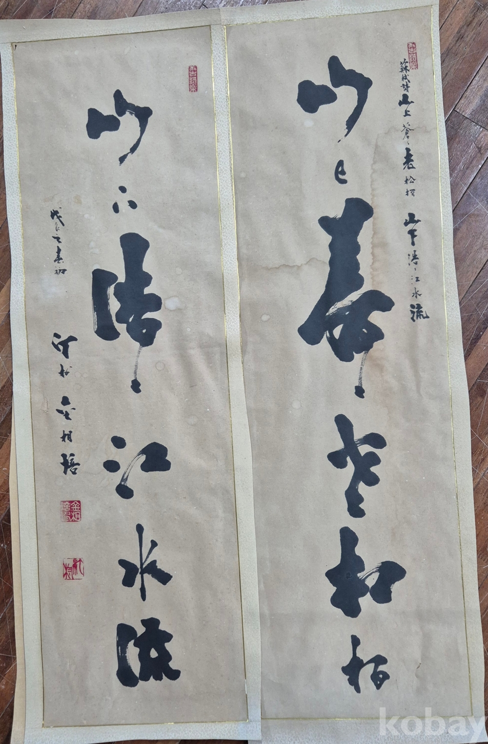 제법 오래된 독특한 서체의 범상치 않은 대련 서예 작품'이오니 작품 이미지상 수결 및 낙관'등 두루