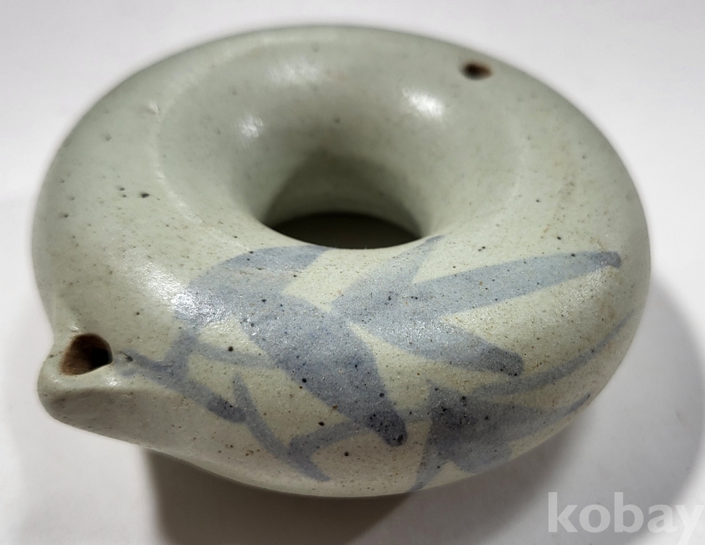 구한말 연대 갖춘 청화백자 대나무(竹)문양 또아리 연적(硯滴)입니다,