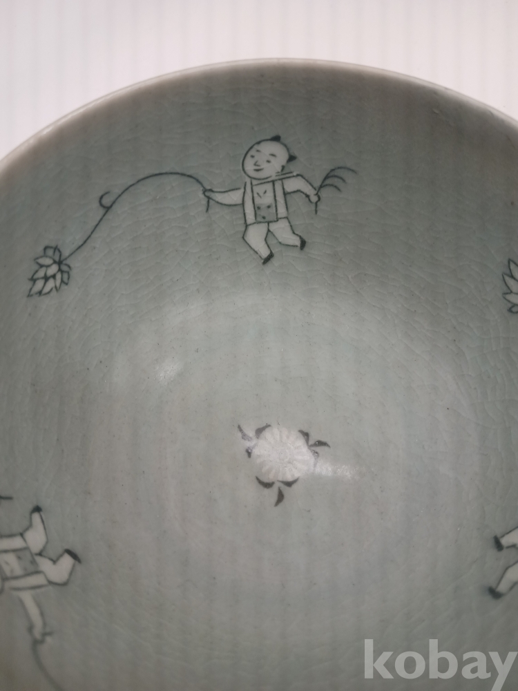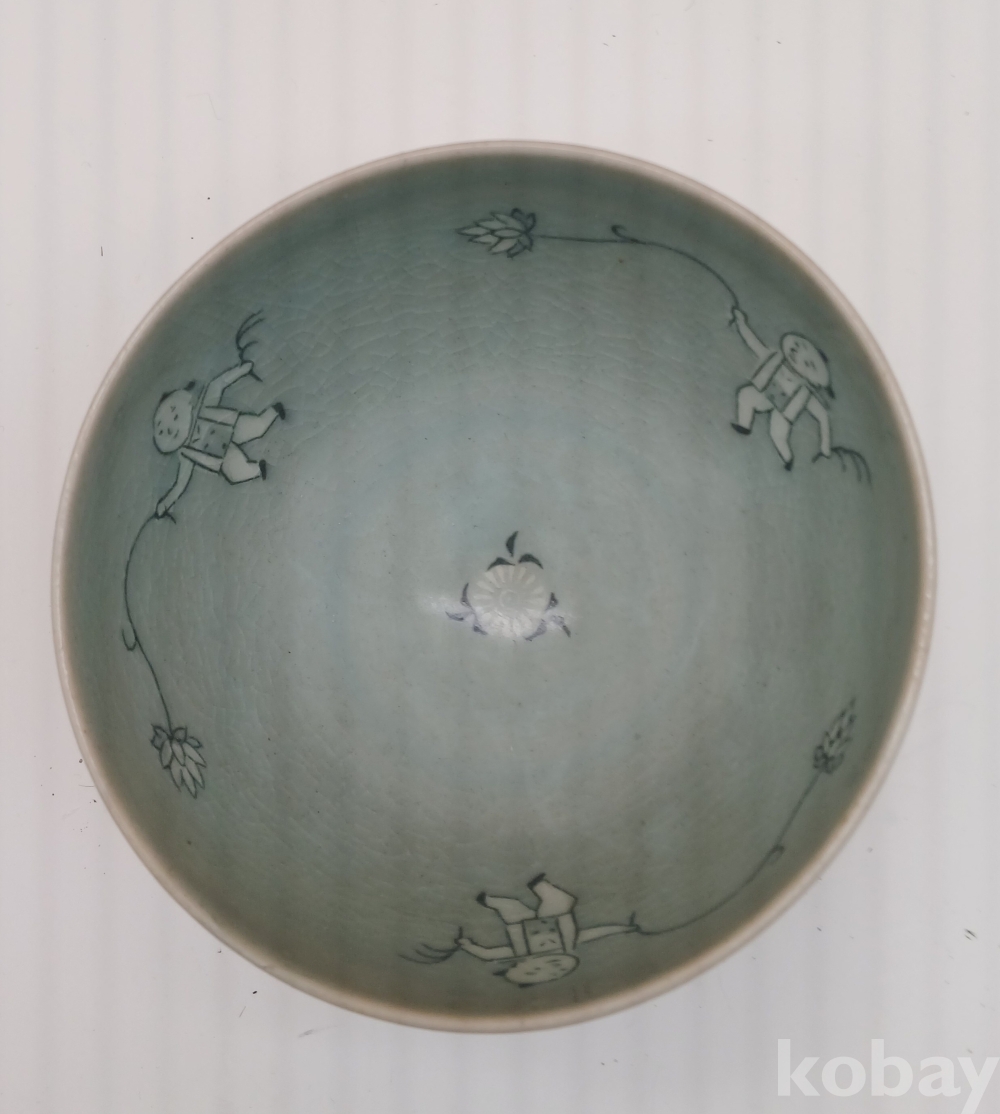 1세대 작가의 청자 흑백상감 동자문 완 입니다.