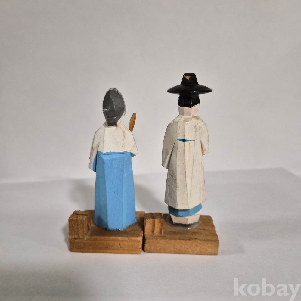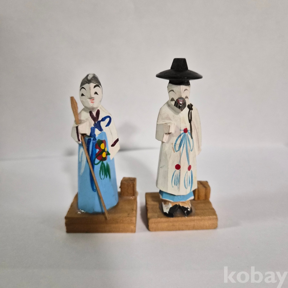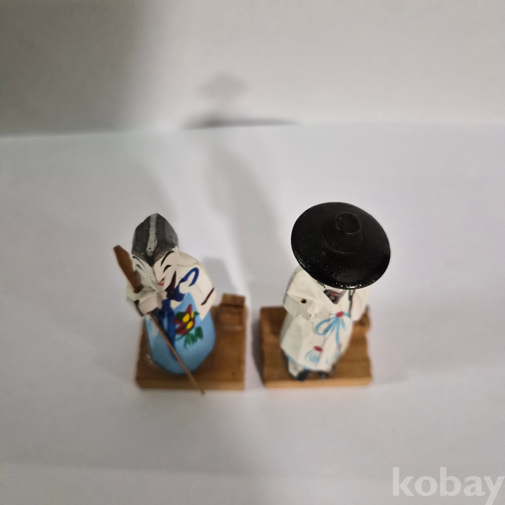 추억의 두루마기 한복 목각인형 한쌍 이며