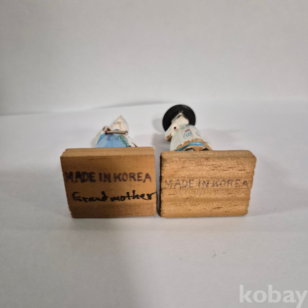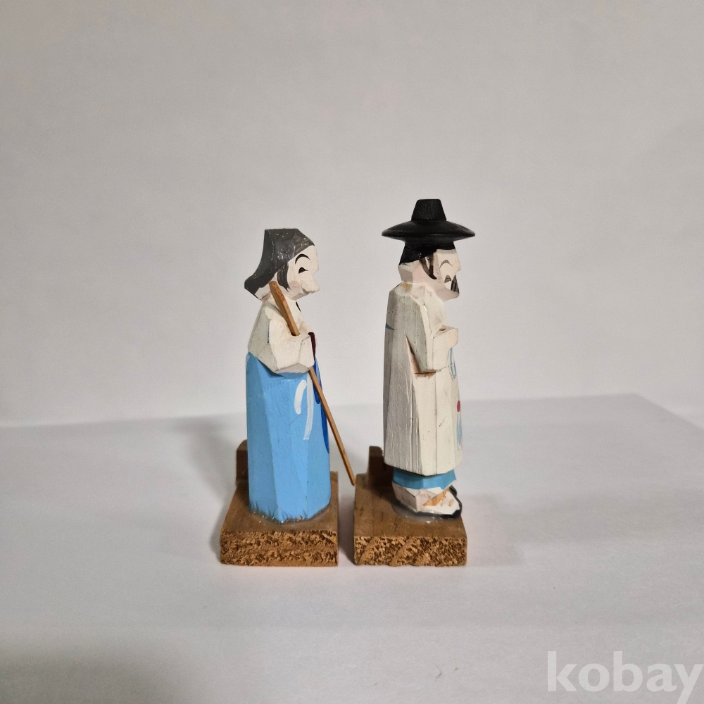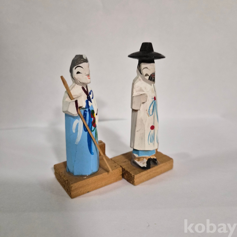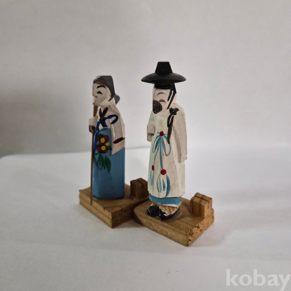 추억의 두루마기 한복 목각인형 한쌍 이며