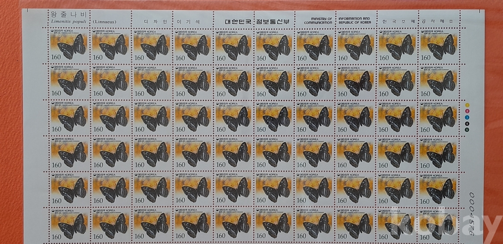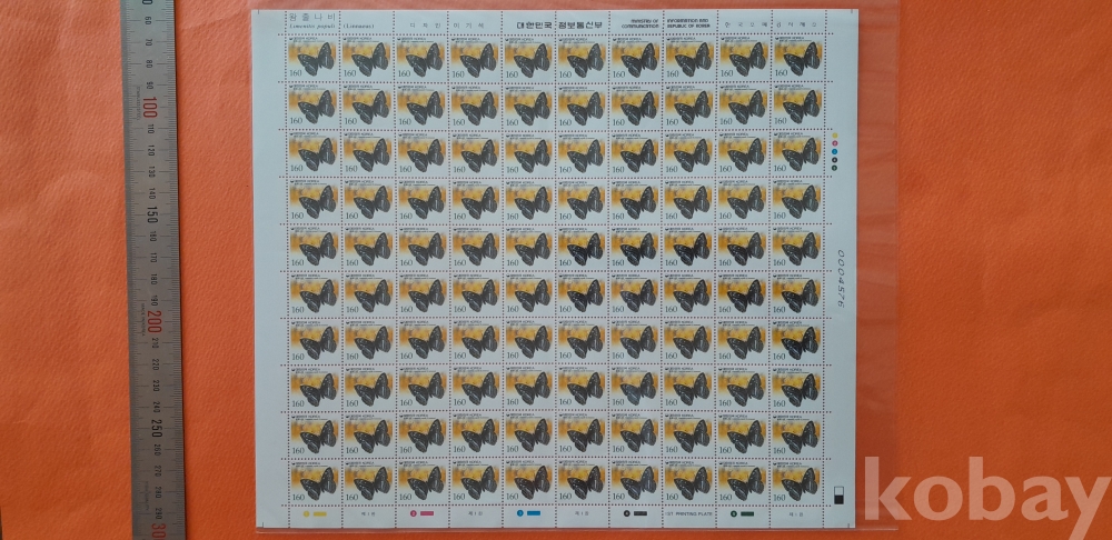 2002년 기본료 190원 시기 160원 왕줄나비 100매 전지 입니다.