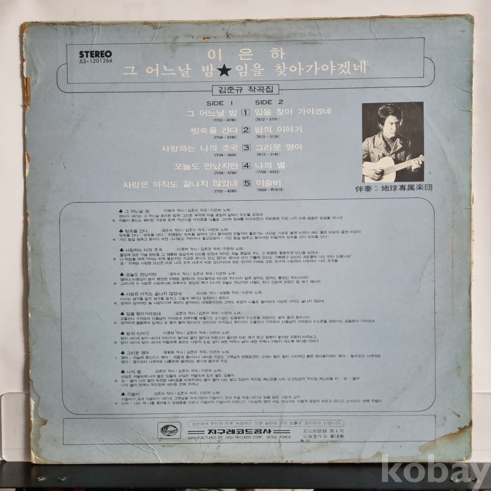 | 자켓상태 | VG : 주름, 접힘, 모서리 찢김 다수 | 음반상태 | VG : 생활 기스 다수, 가벼운 노이즈 존재 | 발매정보 | 초반 | 가사지여부 | 무 |