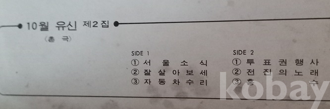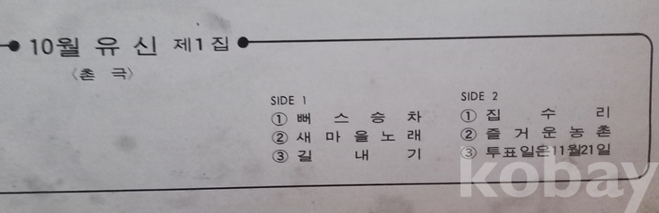 * 7인치 더블앨피로 10월 유신의 당위성을 홍보하기 위해 문화공보부에서 만든 만담형식의 촌극.