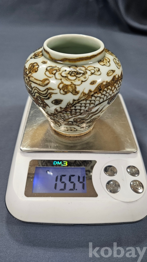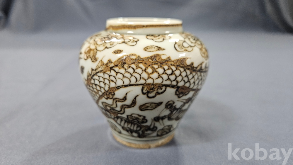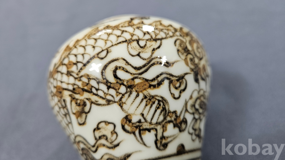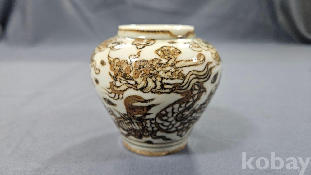 구름과 용문양이 철화로 그려져있는 도자기 한점입니다.
