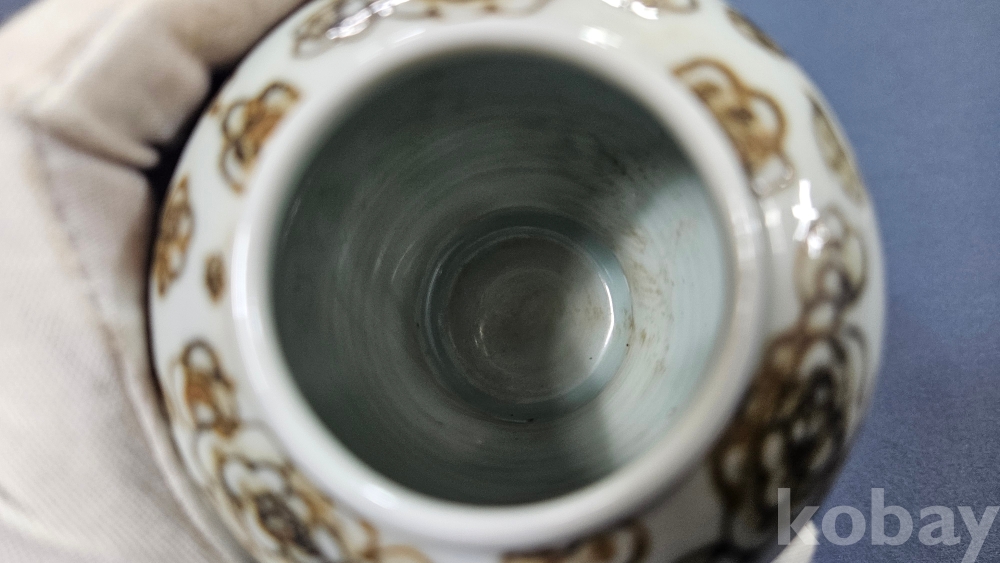 작지만 문양이 꽉 차 있는 도자기 매병입니다.