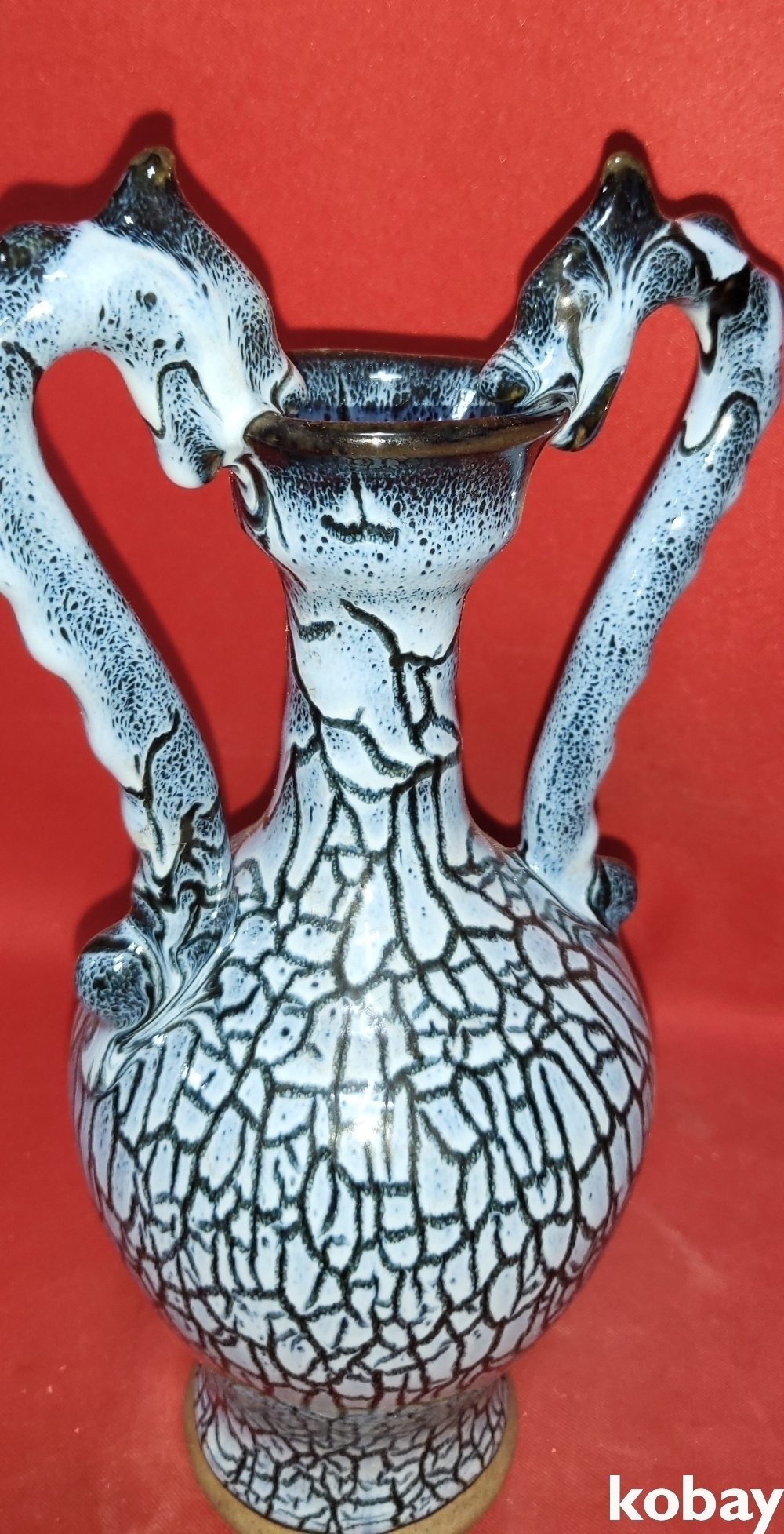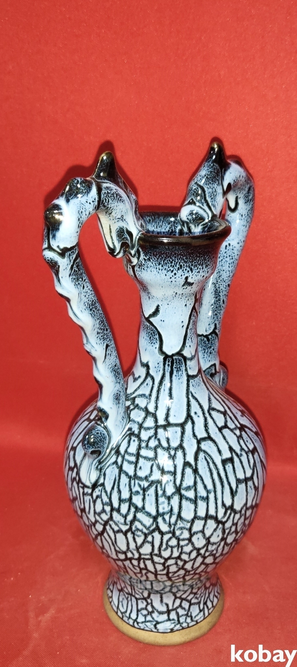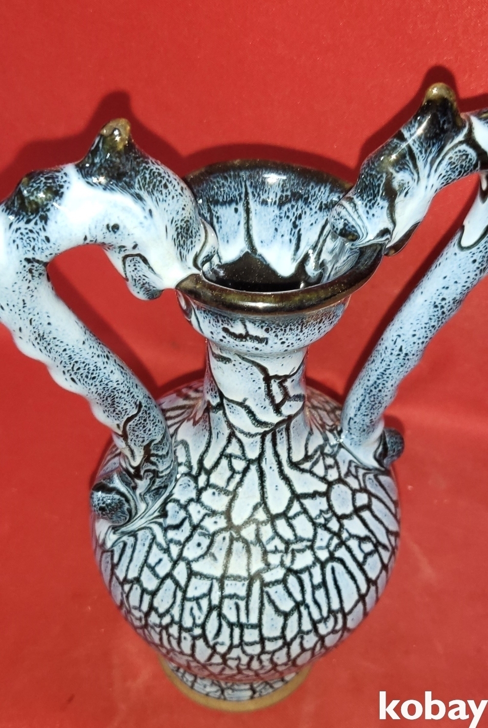두마리의 용이 병의 주구를 입으로 물고 병의 손잡이를 대신하는 형상입니다,