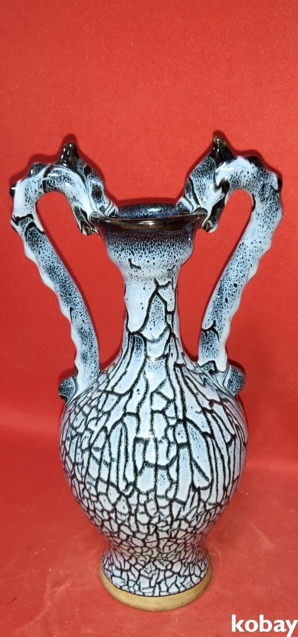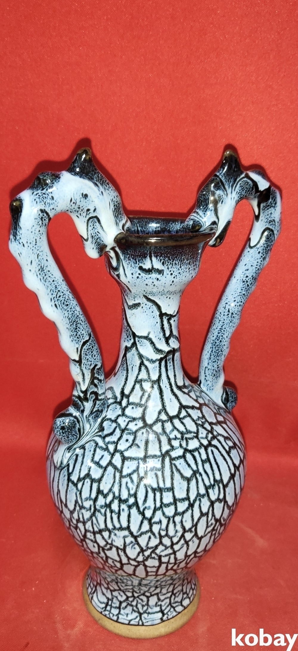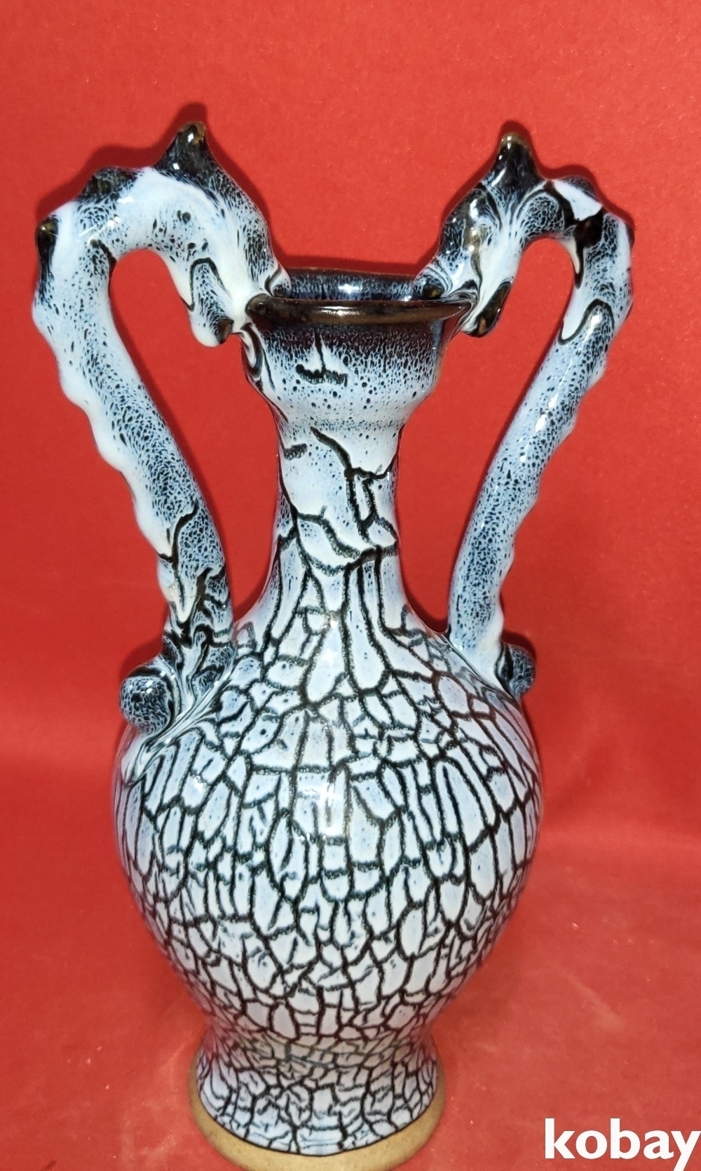 두마리의 용이 병의 주구를 입으로 물고 병의 손잡이를 대신하는 형상입니다,