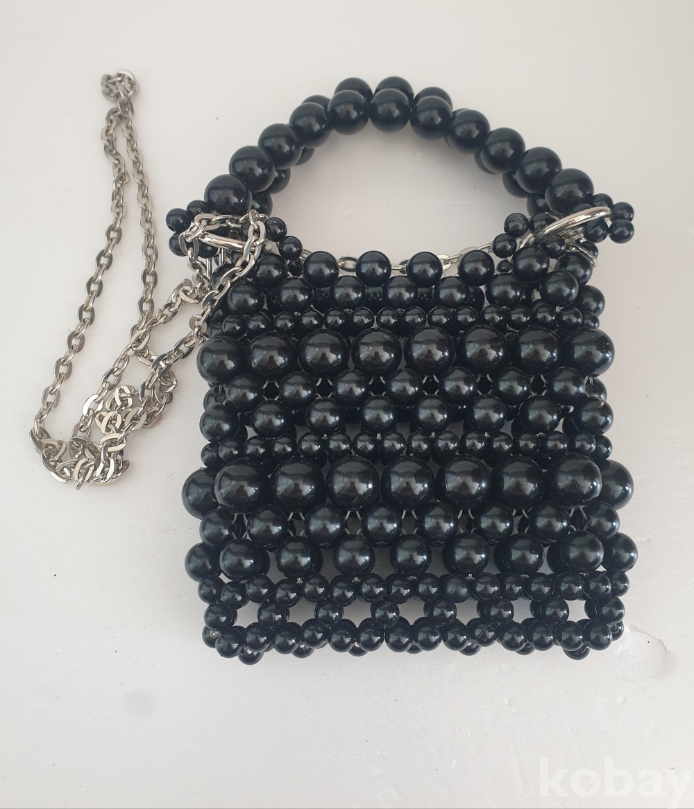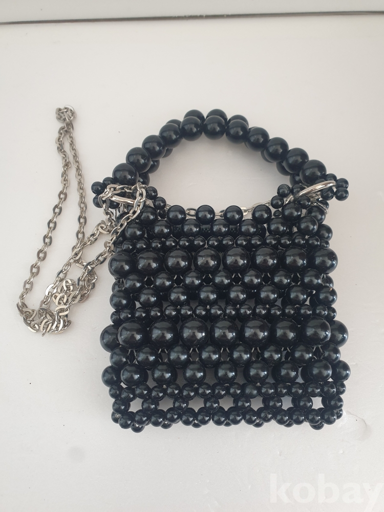 [천원경매] 12-512 블랙 비즈 미니 토트백(12.5*12cm)