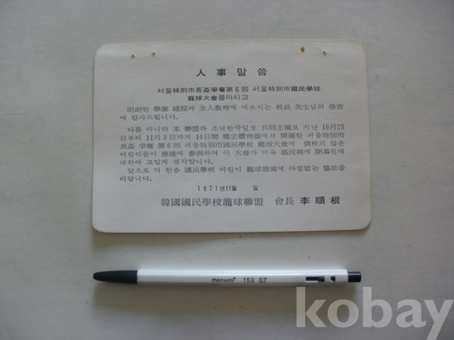 한국 국민학교 농구연맹 회장 - 서울특별시장배 등 폐막 - 인사말씀 (1971년)