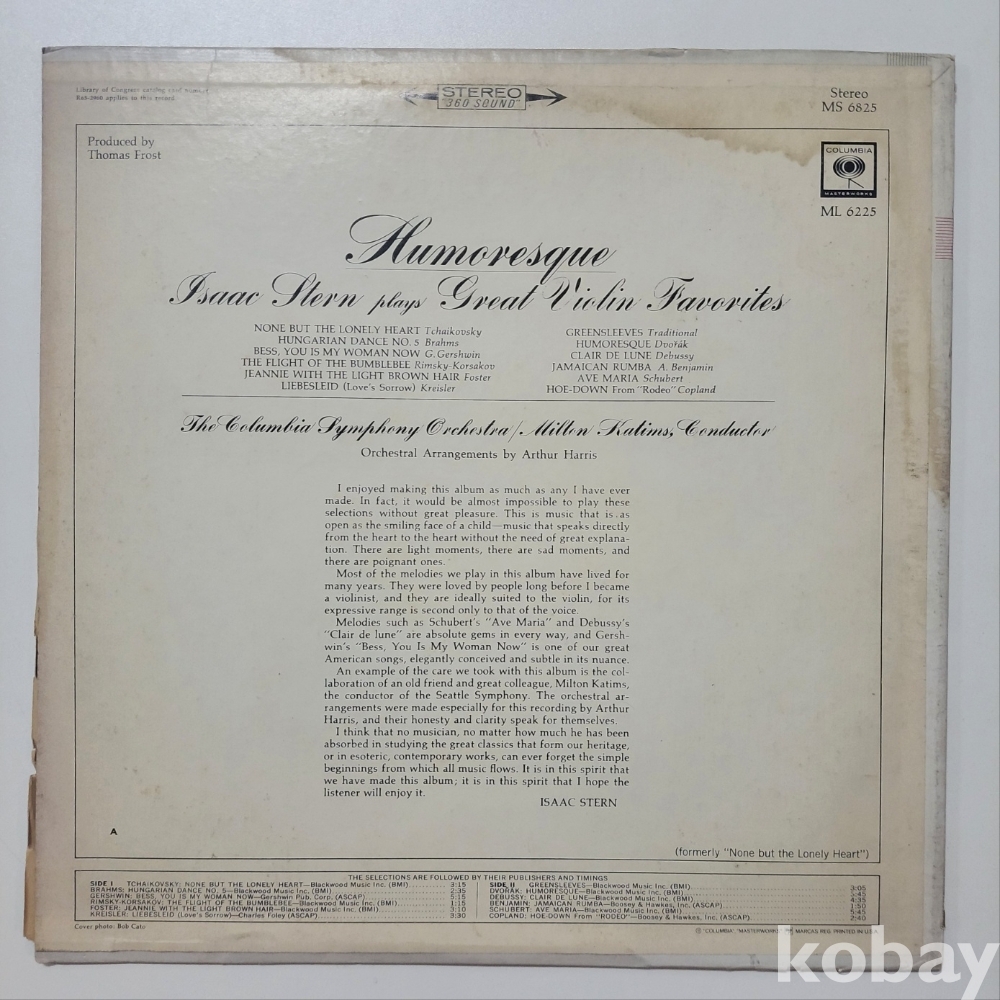 바이올리니스트 아이작 스턴(Isaac Stern)의 "Humoresque: Isaac Stern plays Great Violin Favorites"입니다.