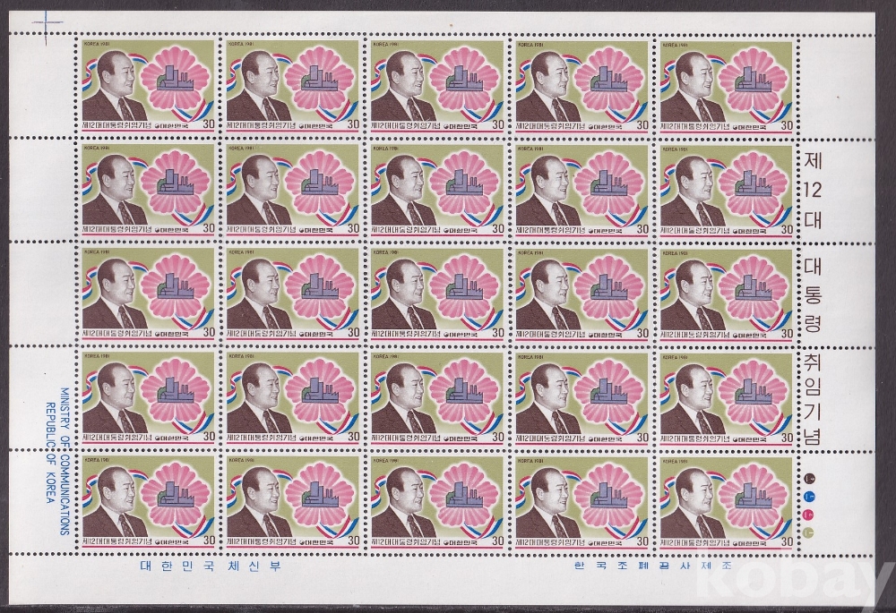 - 미사용 1981년 제 12대 전두환 대통령 취임 기념 전지