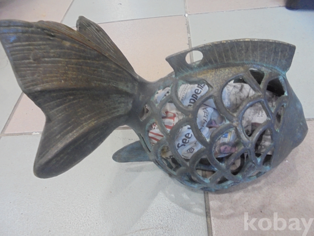 두터운 유기로만든 원숭이가 들고매달려있는 안에 촛불커는 등과 출세 자손 재산등 최고인기품으로 멋있는 무거운 유기 물고기