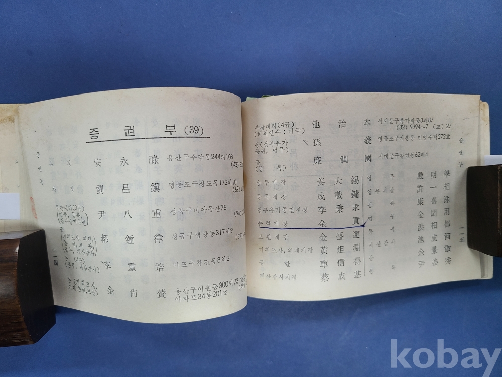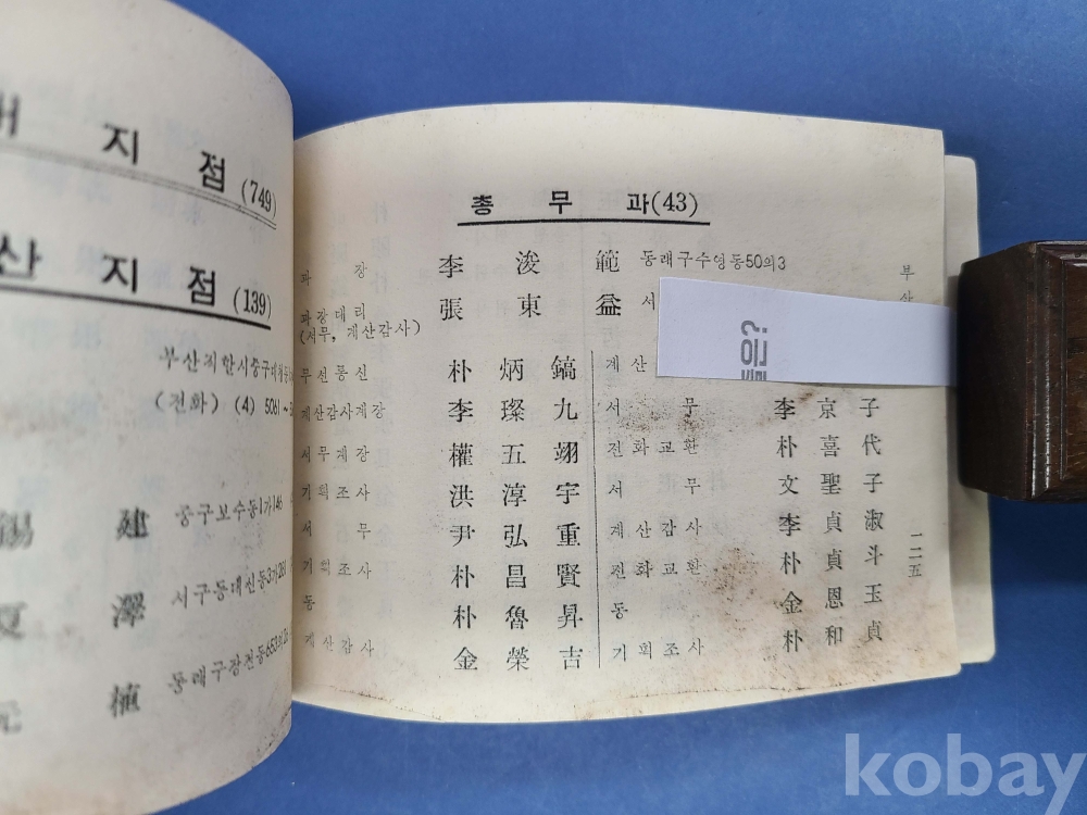 한국은행 직원명부 2부(1969년,1971년)/182쪽,219쪽/전체적으로 얼룩흔적 있음.