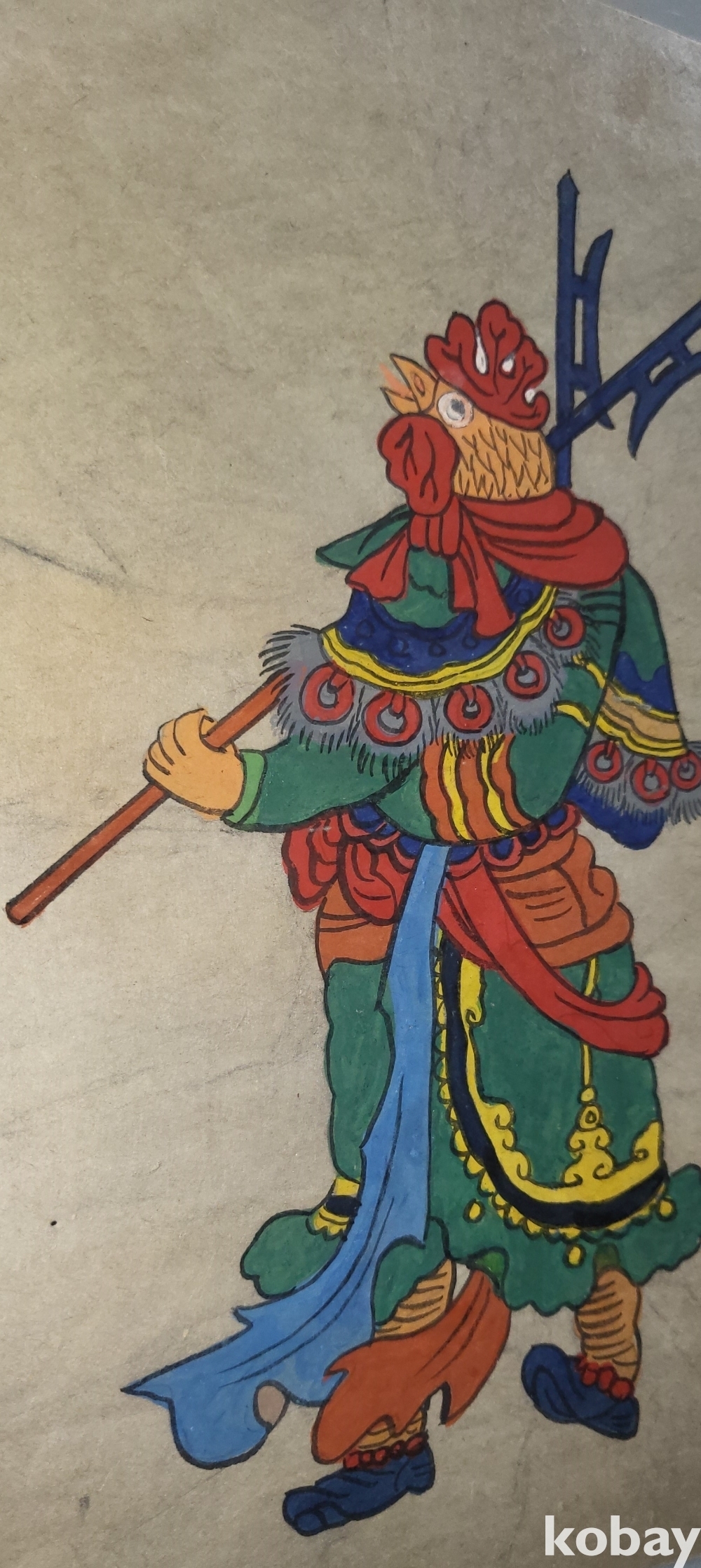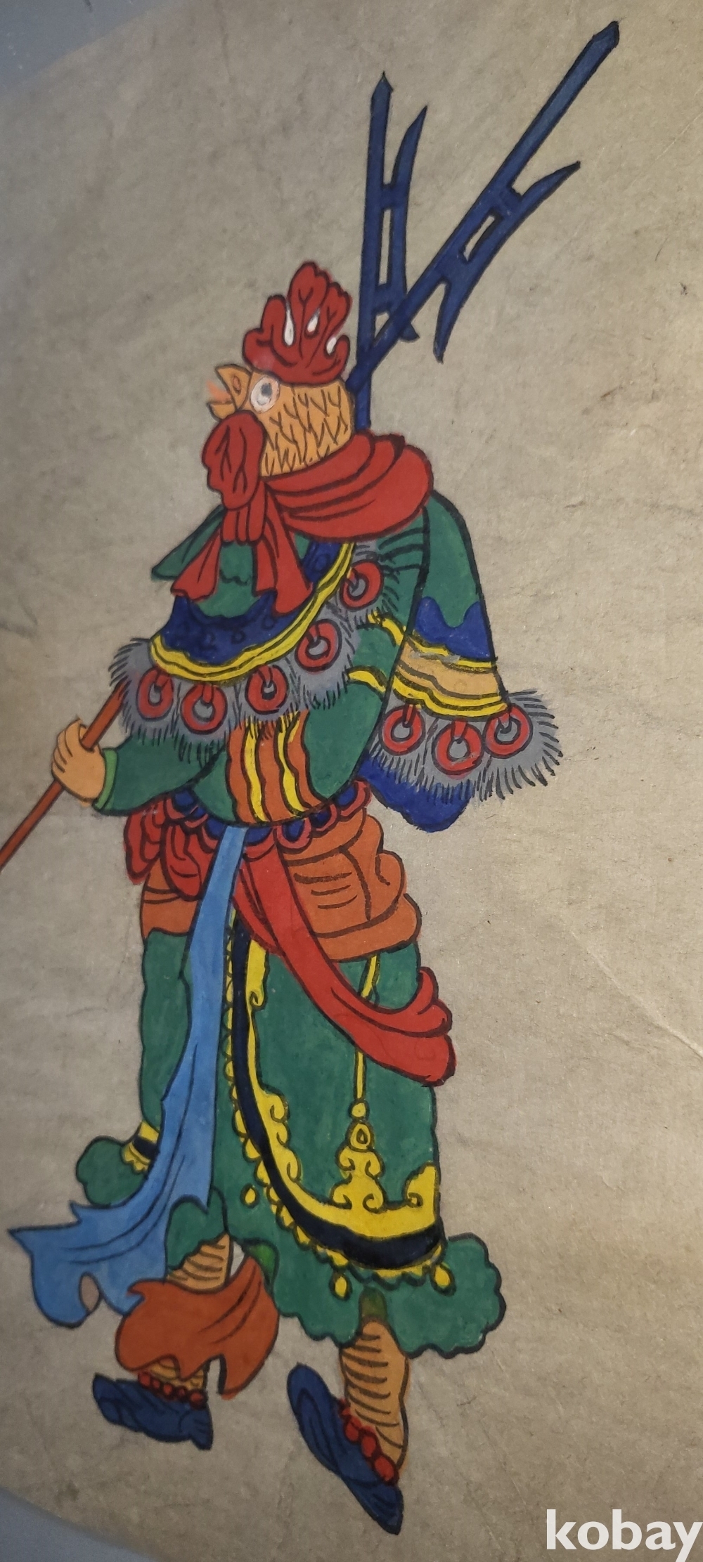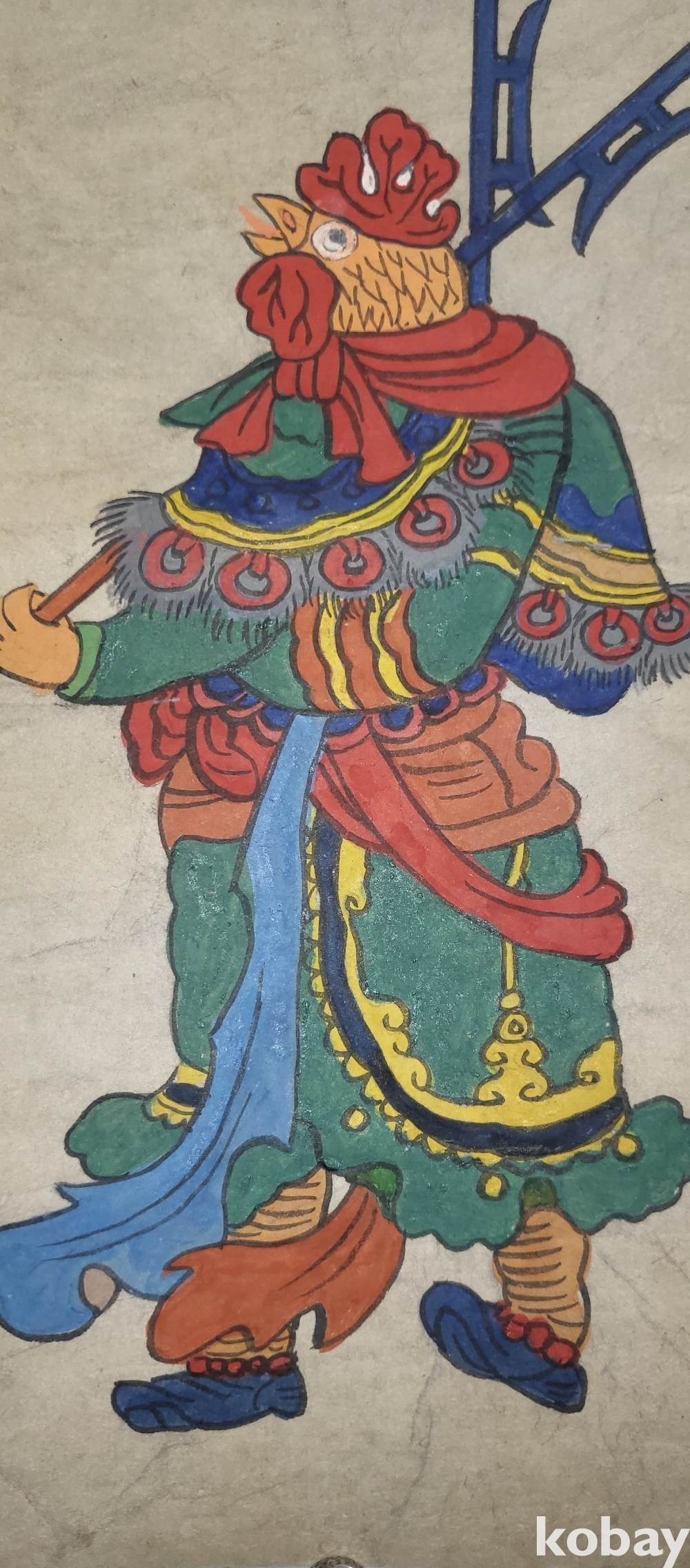 구한말 연대 갖춘 장지 바닥에 당채로 그려진 동물 형상 그림입니다,