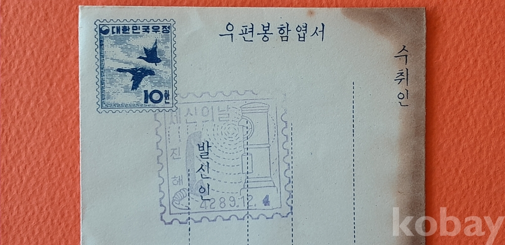 1956년 10환 기러기 봉함엽서에 '체신의 날 진해 기념인' 엽서 입니다.