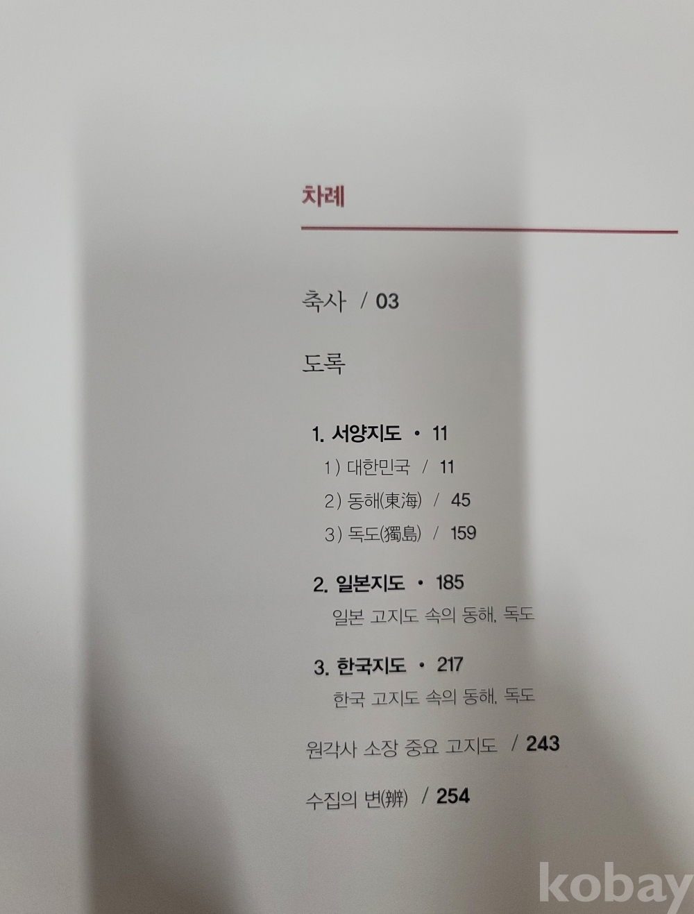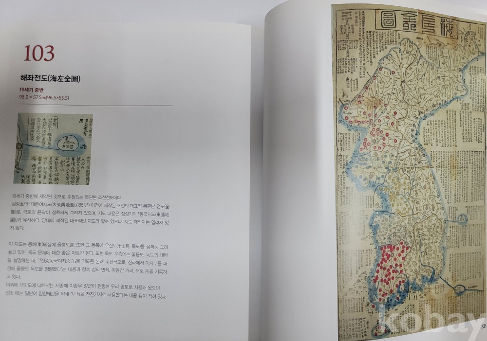 지도를 수집한 원각사 주지 정각스님이 각 지도에 대한 해설을 붙였는데, 〈1. 서양지도〉·〈2. 일본지도〉·〈3. 한국지도〉 순으로 수록하였습니다. 각 지도를 연대순으로 수록하여, 시대 흐름에 따른 지도상의 변화 추이를 알 수 있도록 하였으며, 지도가 실린 서책의 간행 연대 및 간행 장소 등을 명기해 두기도 하였습니다.