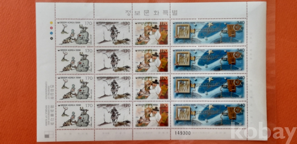 1998년 정보문화 특별(340원 포함) 16매 전지 입니다.