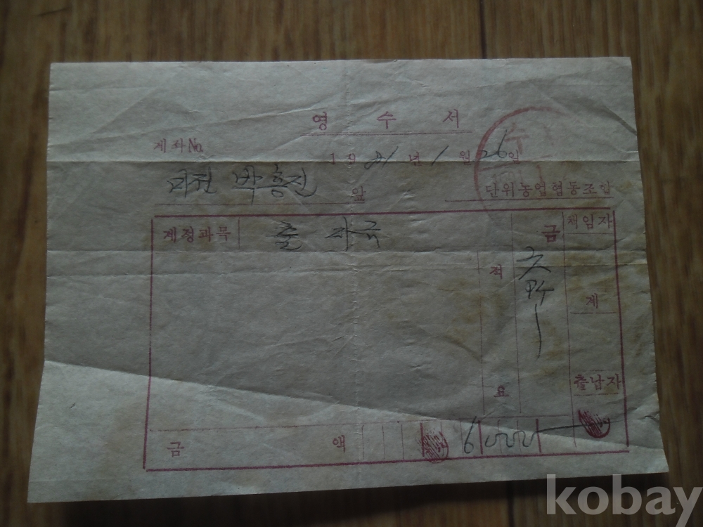 1981년 영동군 미전농협 출자금 영수증