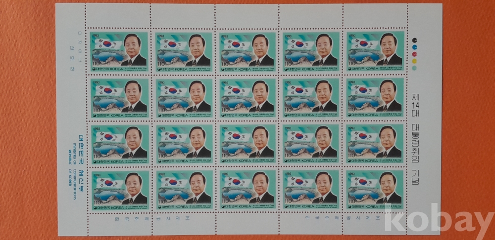 1993년 제14대 김영삼 대통령 취임 기념 20매 전지 입니다.
