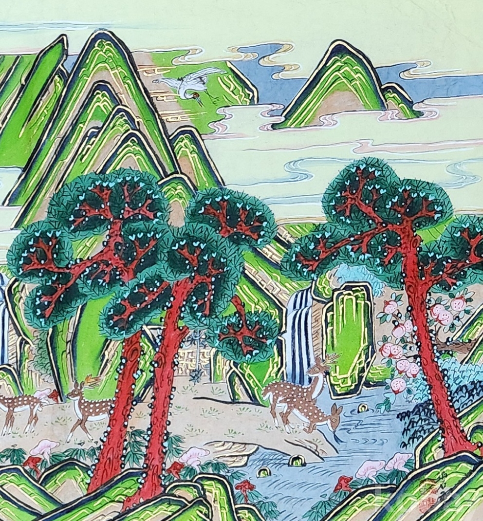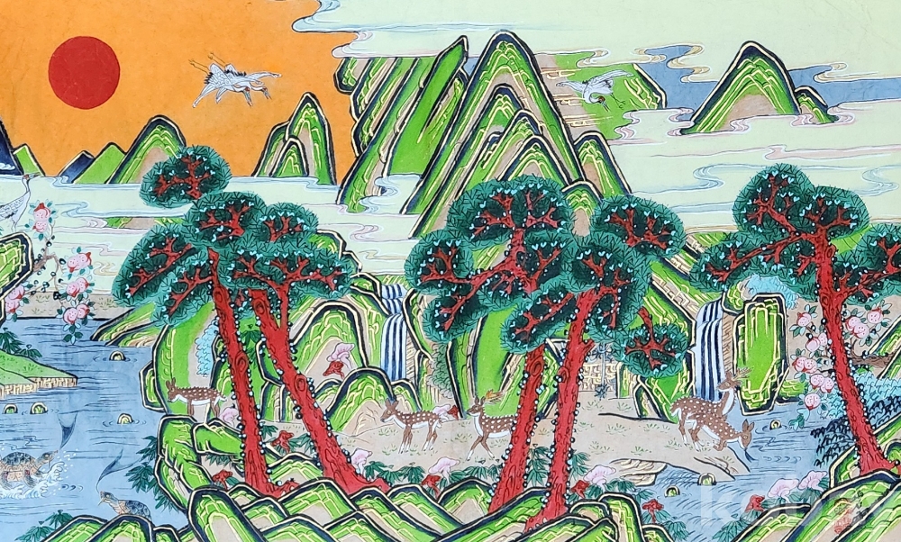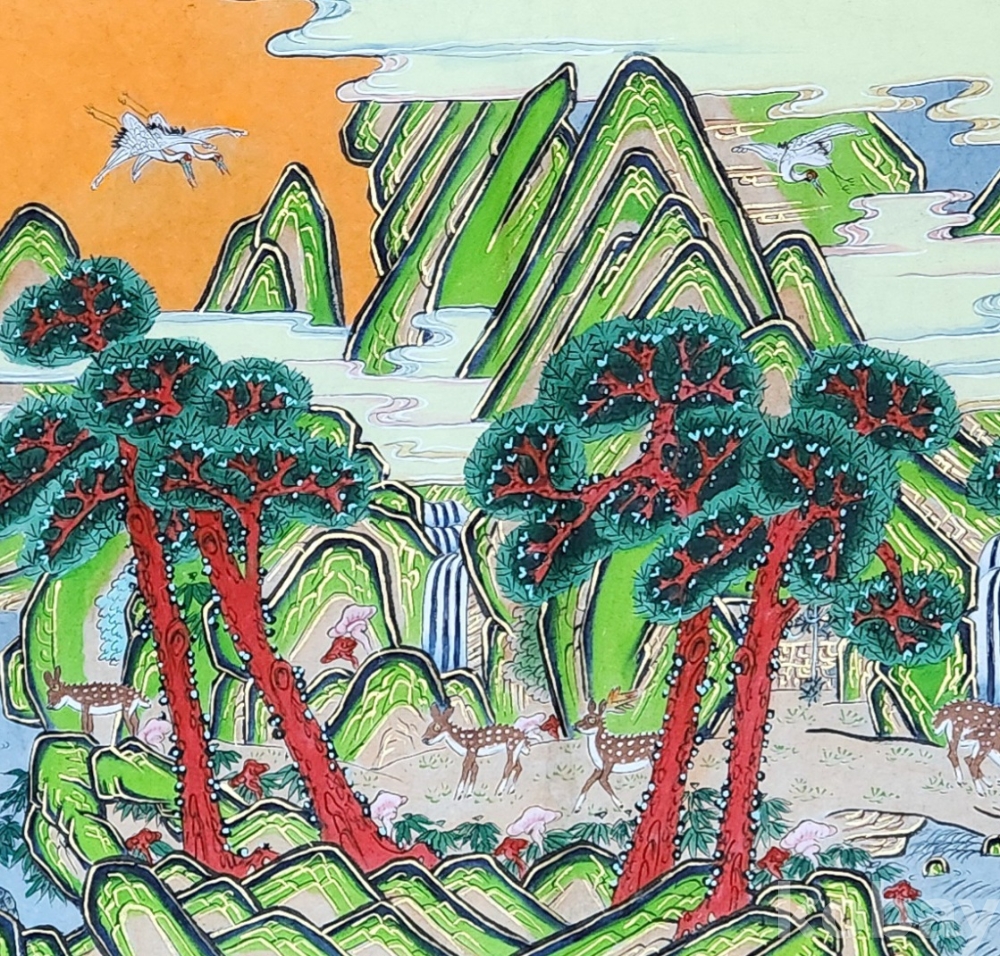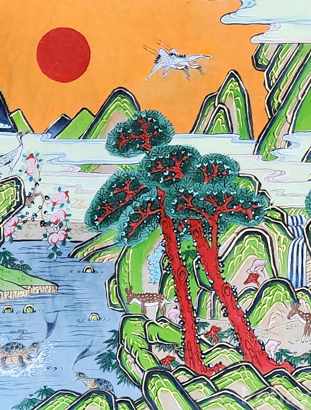 십장생의 종류에는 해·산·물·돌·구름·소나무·불로초·거북·학·사슴이 있다.