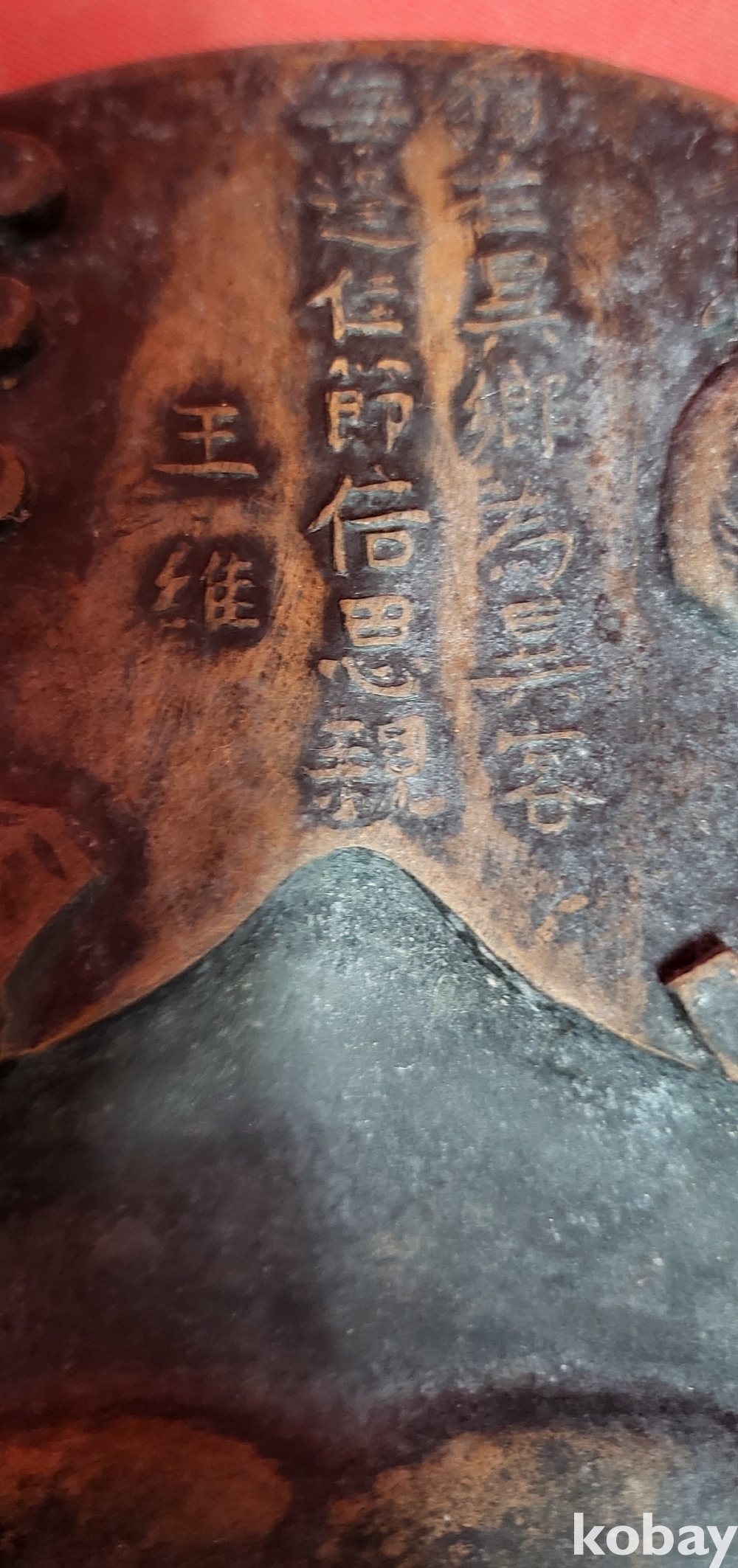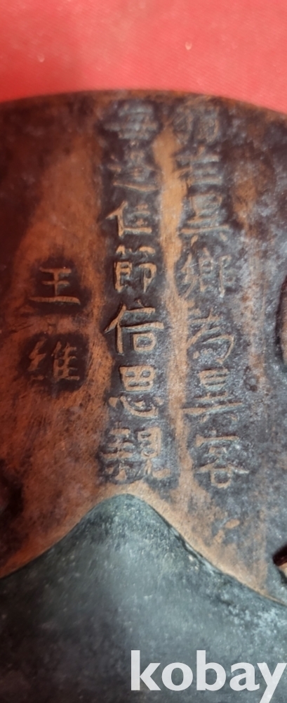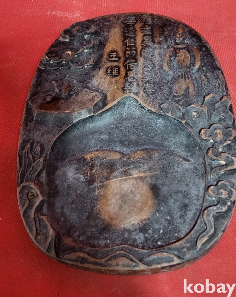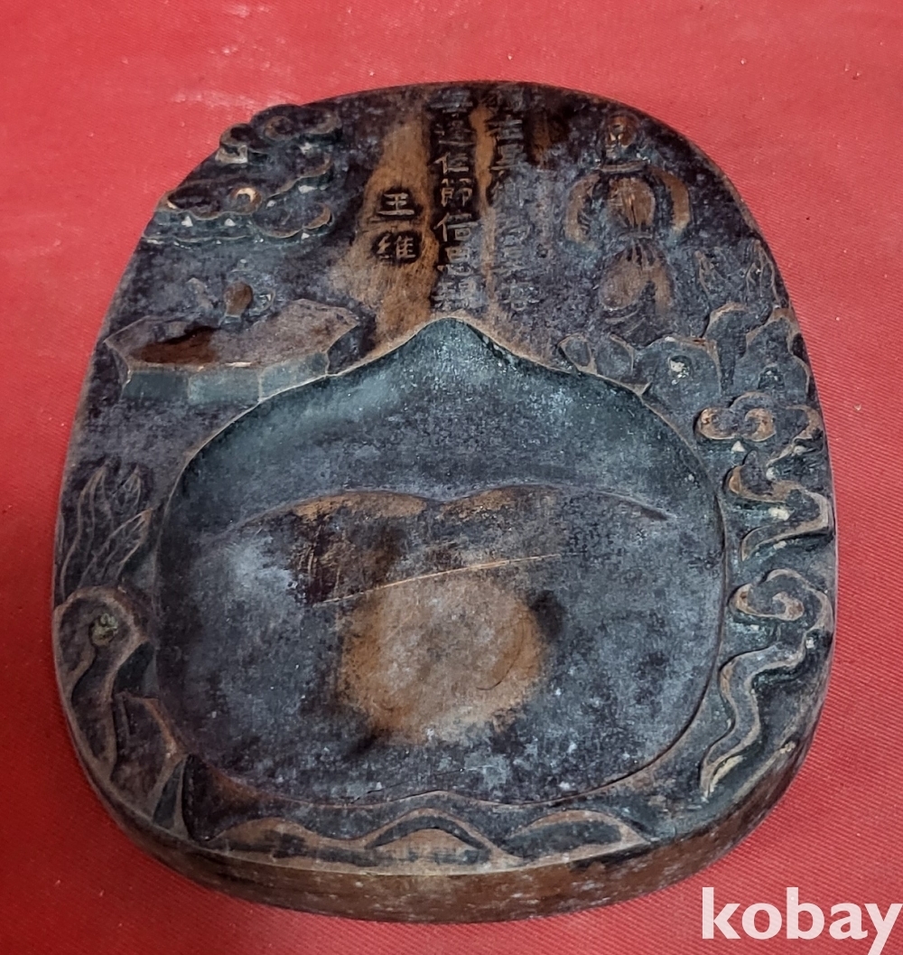 벼루 상단에는 우측에는 왕유(王維) 인물이 있으며 중앙에는 왕유(王維)의 시(詩