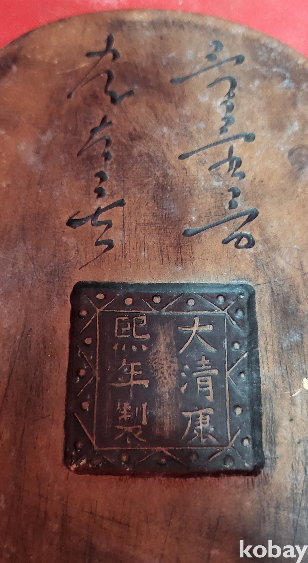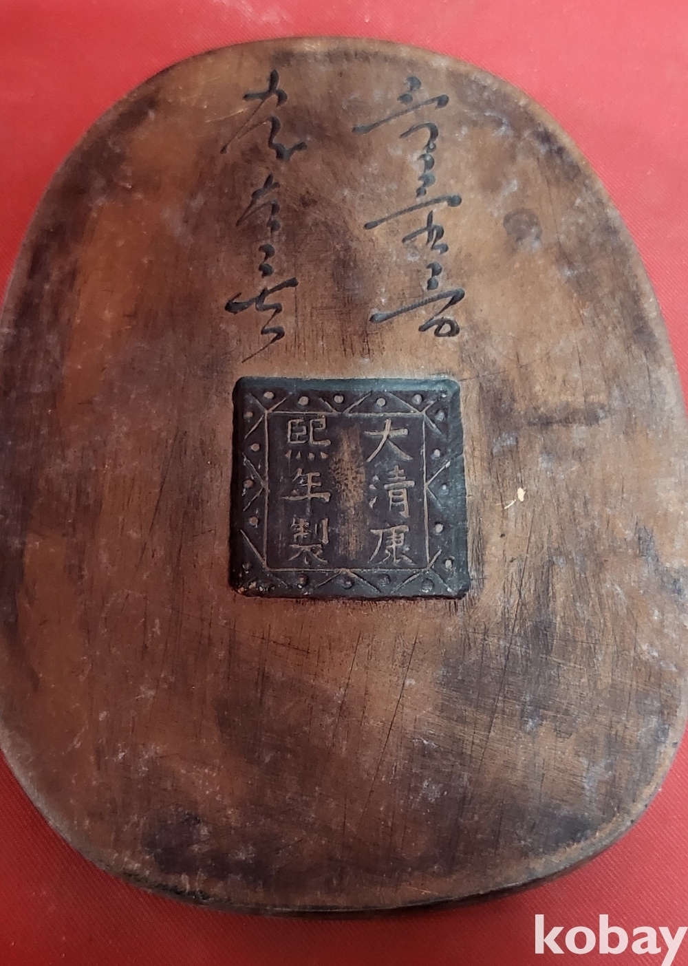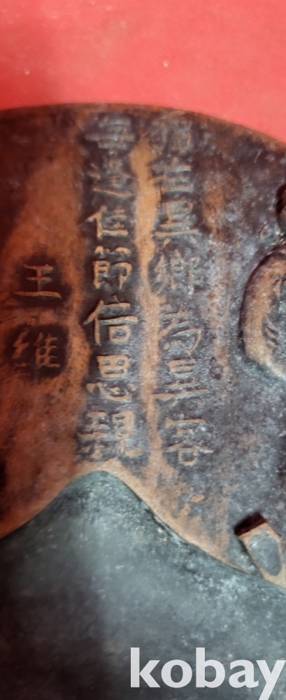 대청 강희연제 자사로 만든 왕유(王維, 699년 ~ 759년) 인물과 서명문양 벼루입니다,