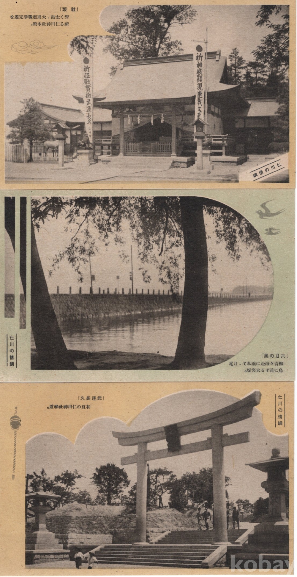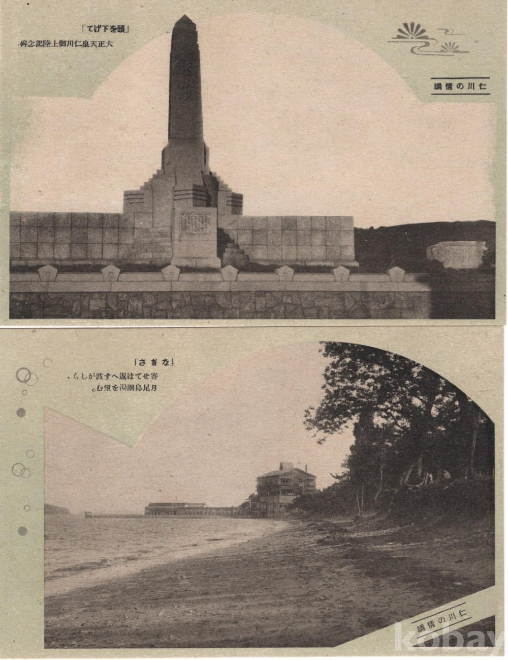 월미도별관, 해군기념일탑, 상륙기념비, 월미도조망, 인천신사, 월미도연결다리, 신사등 사진엽서8매