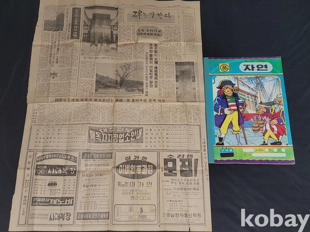 빈티지 세월 감이 느껴지는 1985년 미사용 공책, 1979년 대전일보 신문 스크랩 자료 등 2종 일괄입니다.