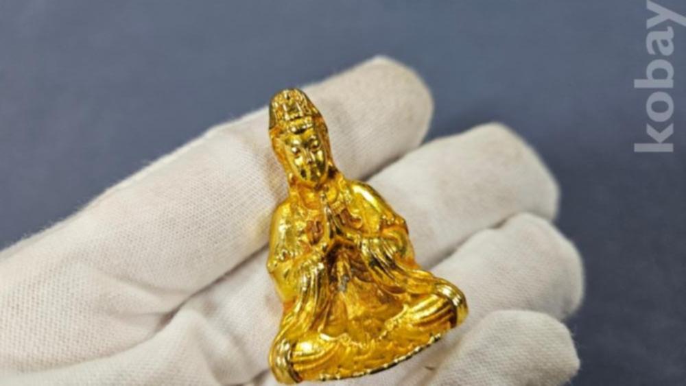 합장을 하고계신 금색 관음불 호신불 입니다.