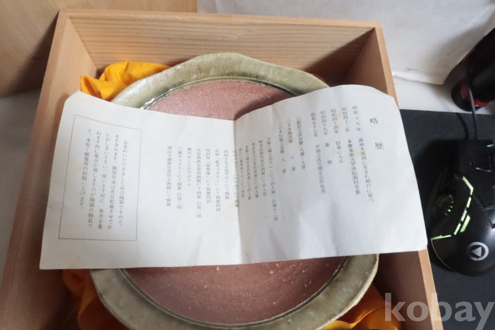 작품 도자기 임니다 도공의 혼을 가진 명물 이며 오리지날 상자에 보관해온 명물 임니다 상자는 세월의 흔적이 보임니다