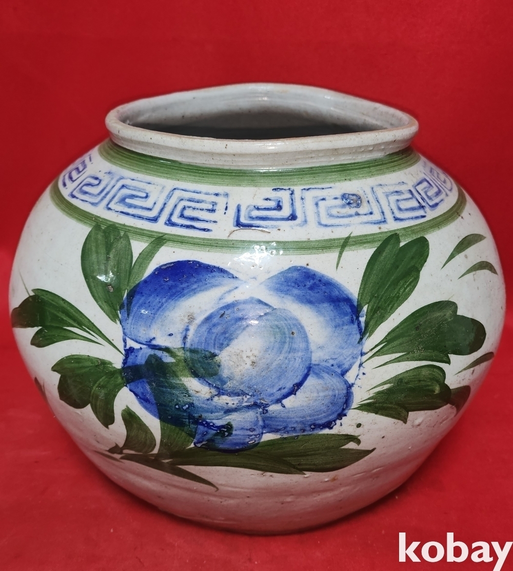 굽에는 실유있습니다,양면에 큰 목단꽃이 도안으로 있습니다,