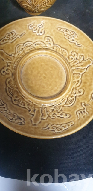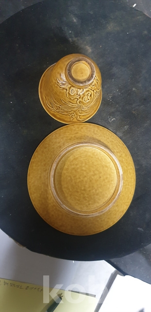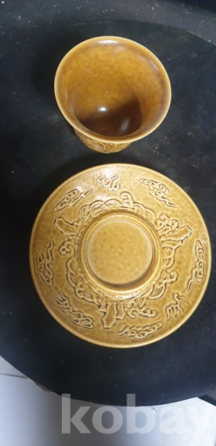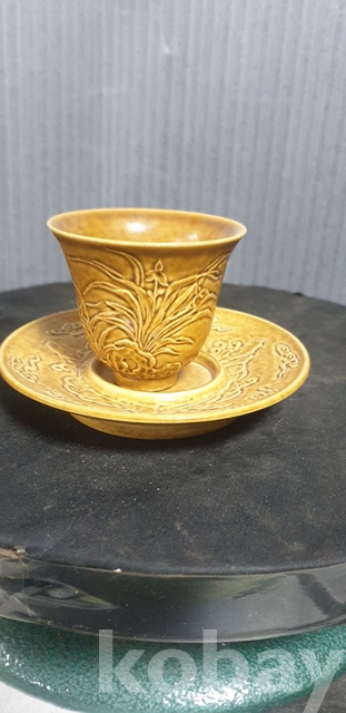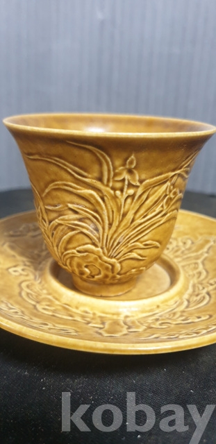 c-32.오래된 양각난초문조각된 황지찻잔셋트
