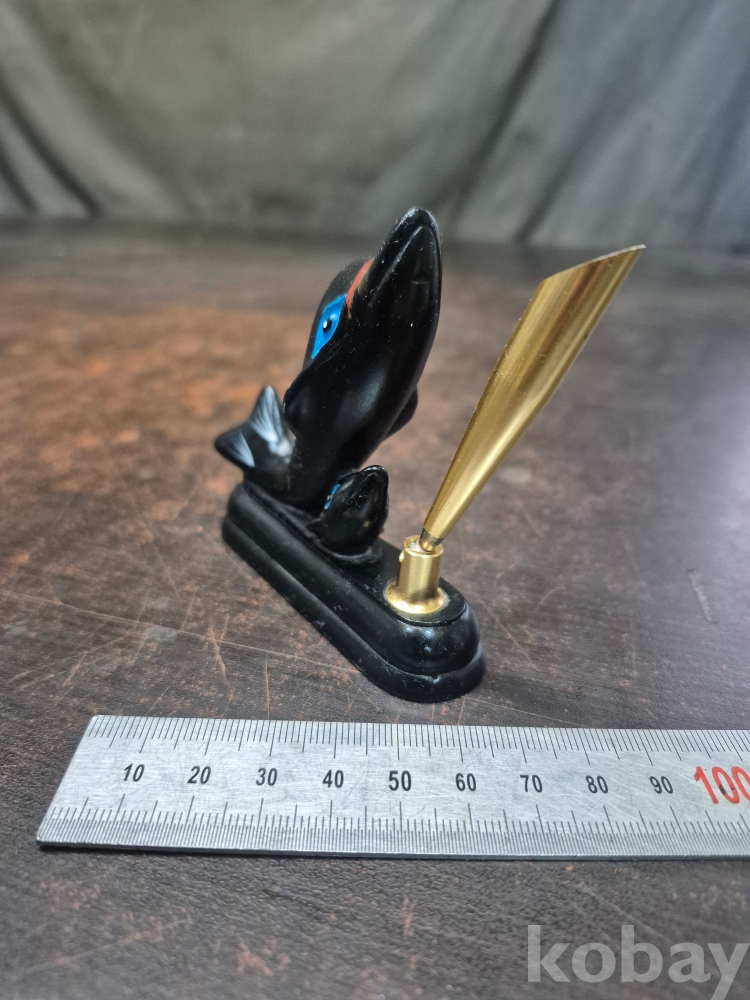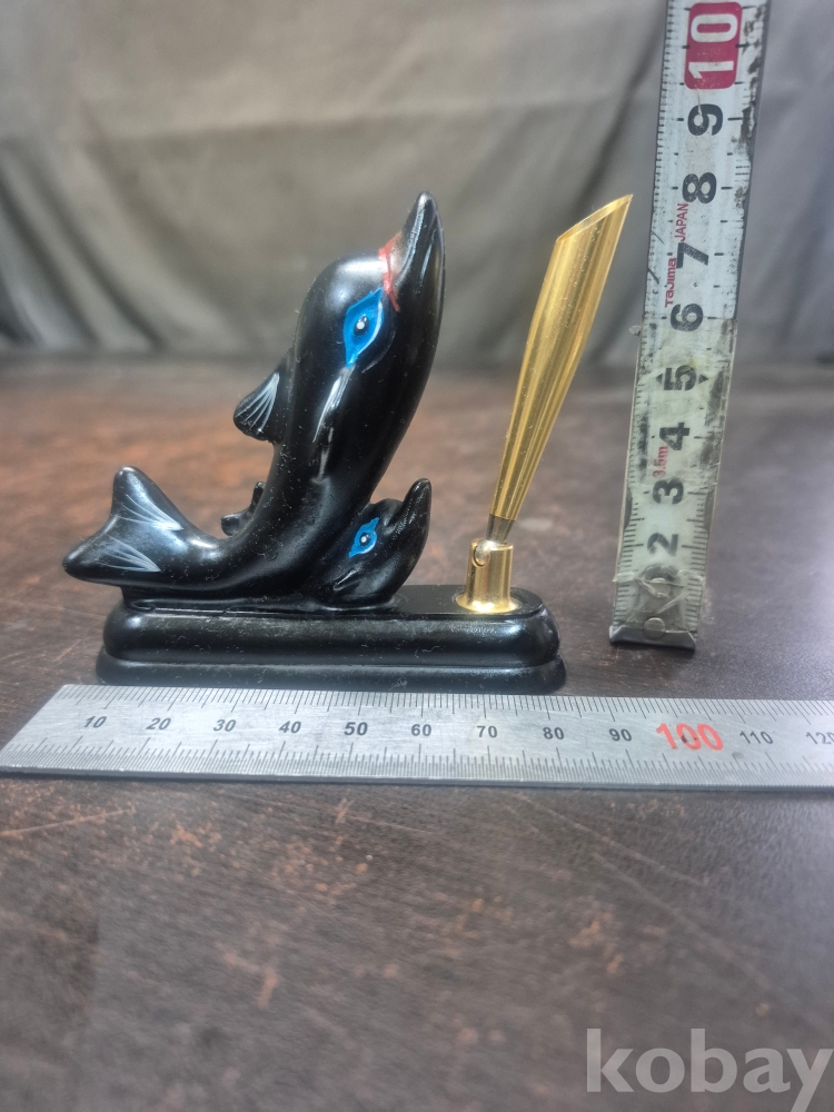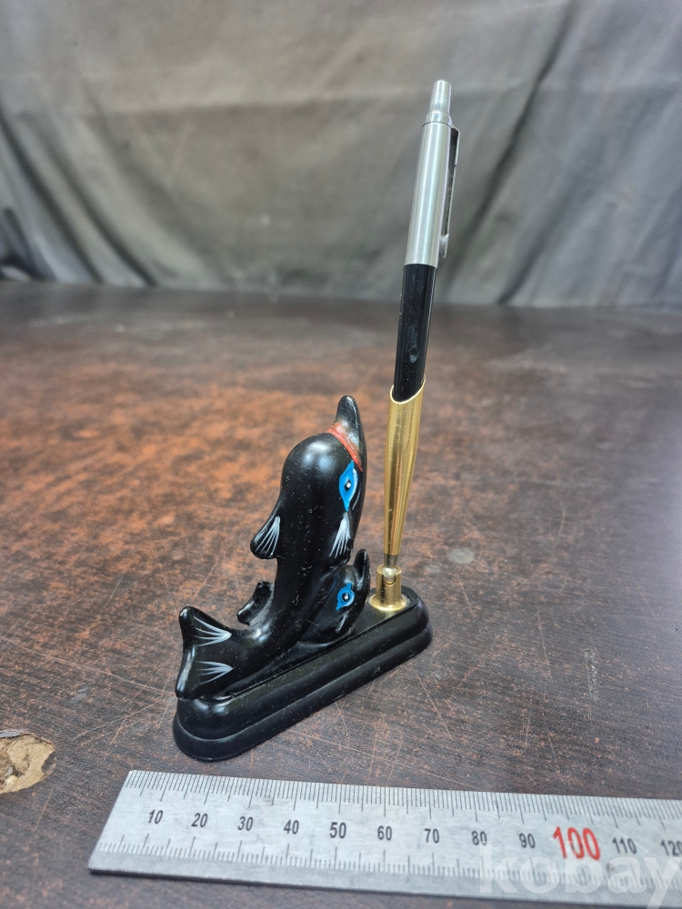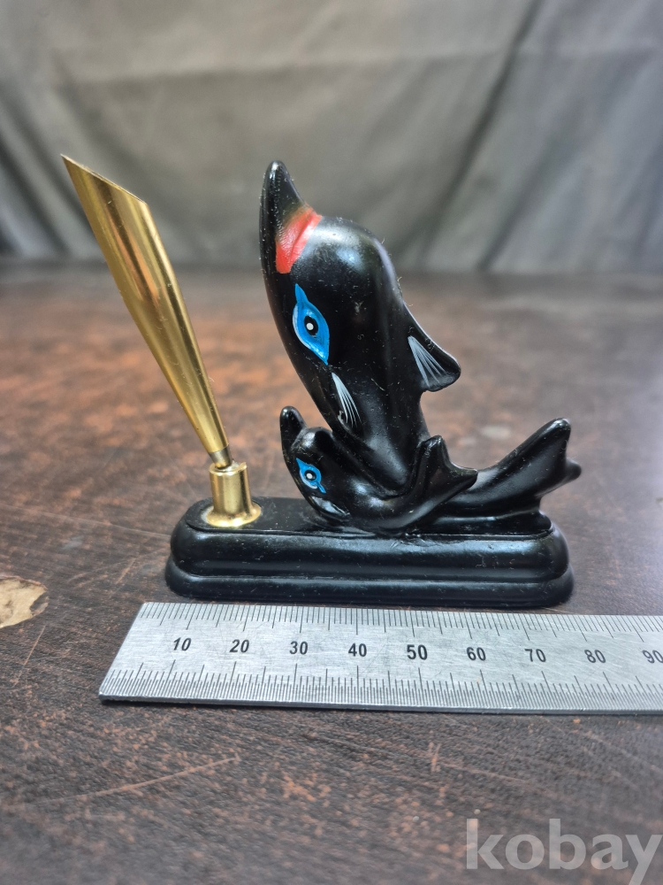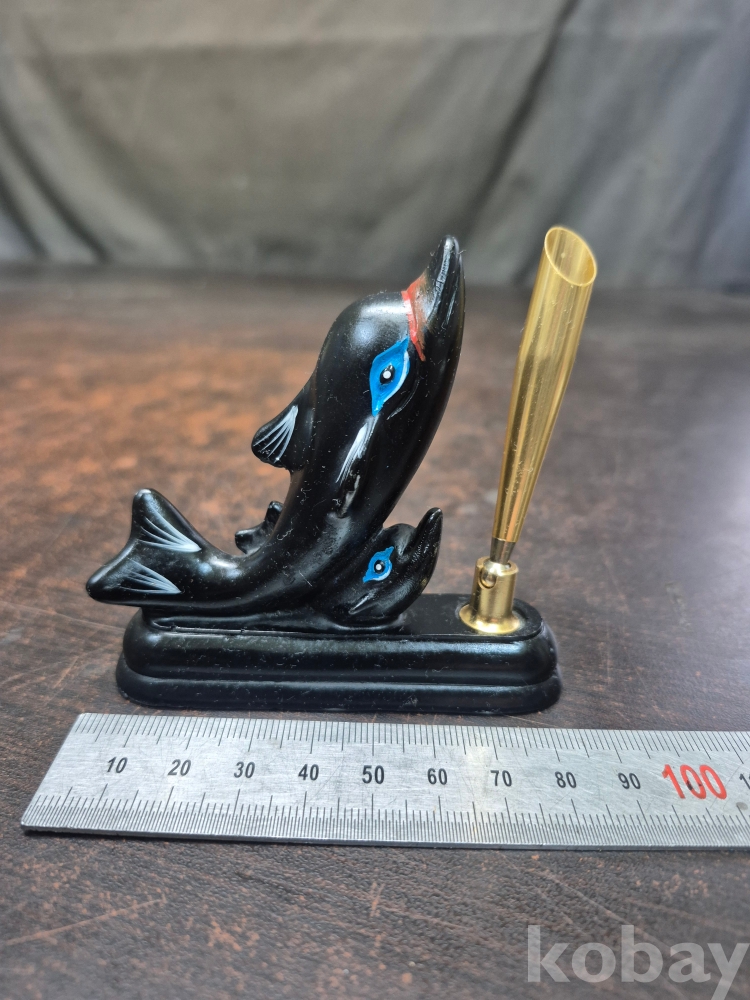 1970년대 소형 볼펜꽂이 돌고래 모양 재질 마블 8.5*2*8