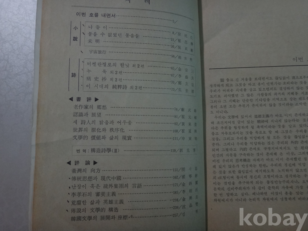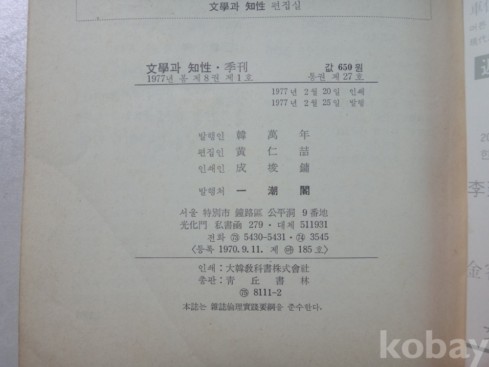 문학과 지성 - 이효석의 탐미주의 등 (1977년)