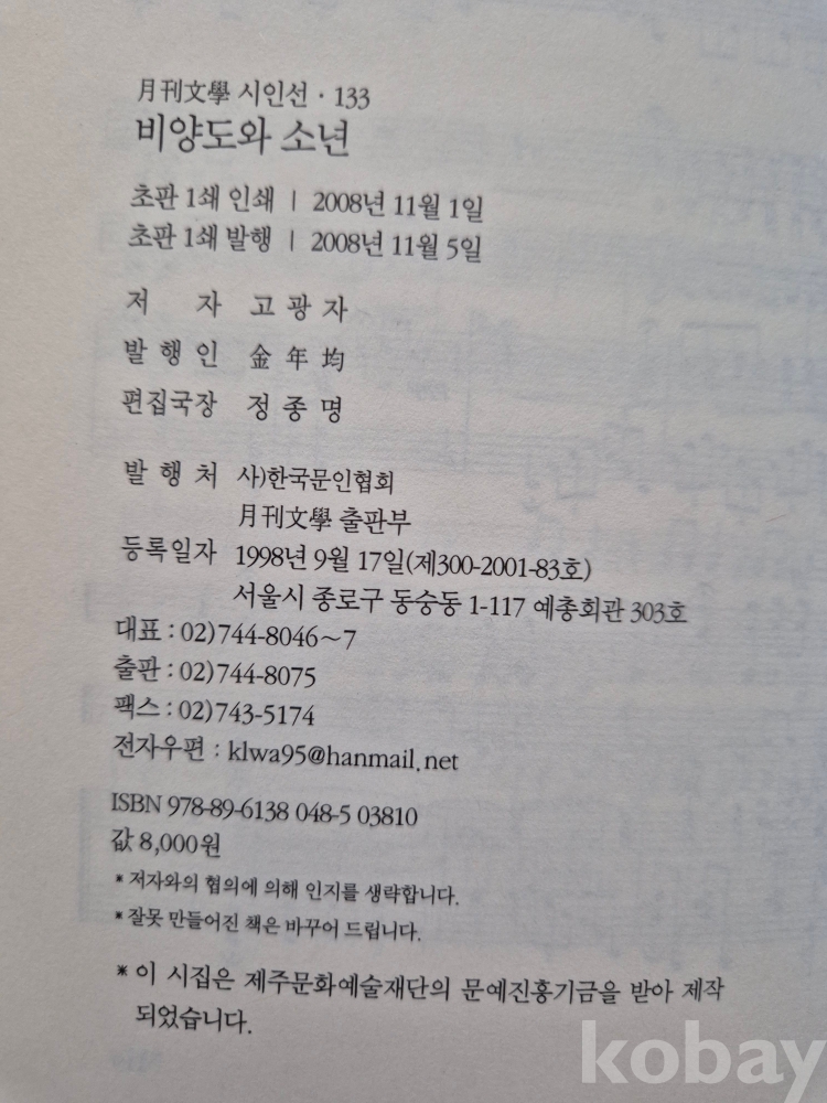 2008년 발간한 제10시집 『비양도와 소년』