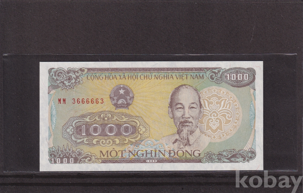 *베트남 특이번호 지폐 모음展* 1988년 1000동 MM 3666663 - 5봉 레이더 미사용 지폐