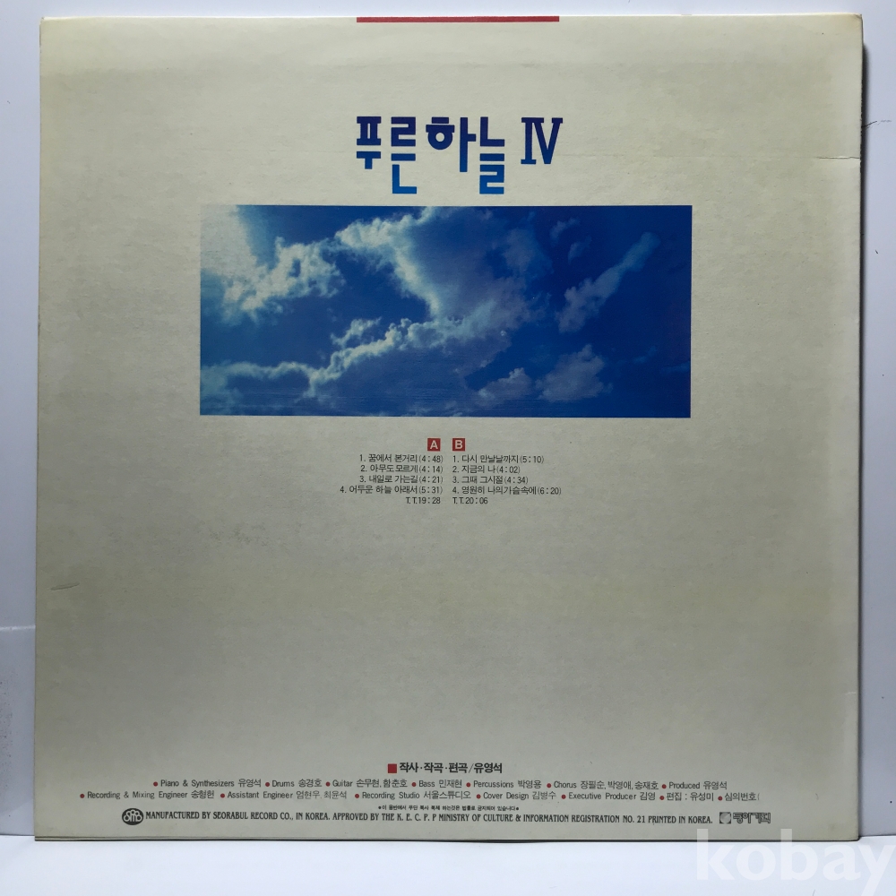 LP 30,940-89 푸른하늘 4집 - 꿈에서 본거리/ 그때 그시절 91 서라벌 자켓 EX+ 알판 EX