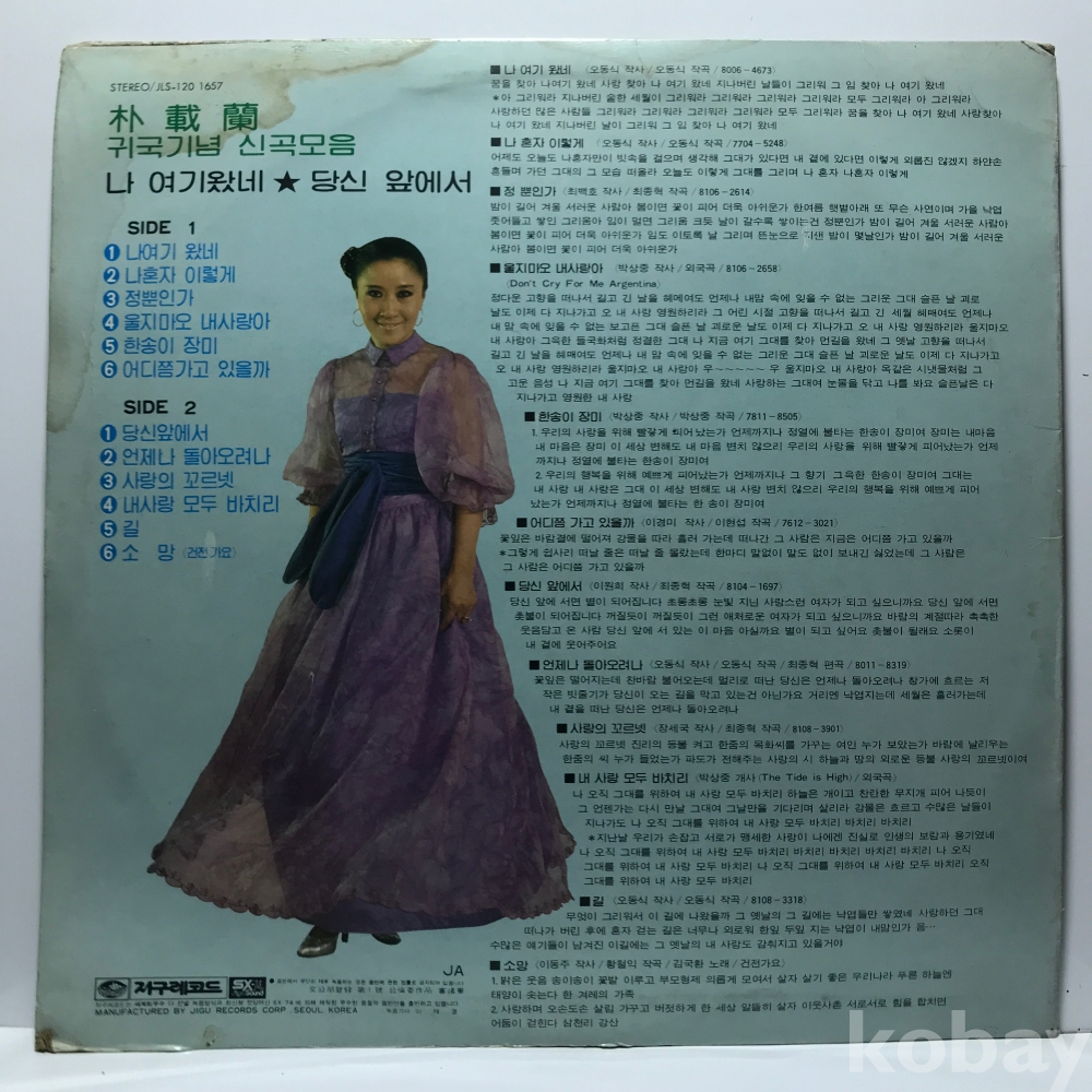 LP 83,800-70 박재란 - 귀국기념 신곡모음 . 자켓 EX- 알판 EX 81 년 국내반