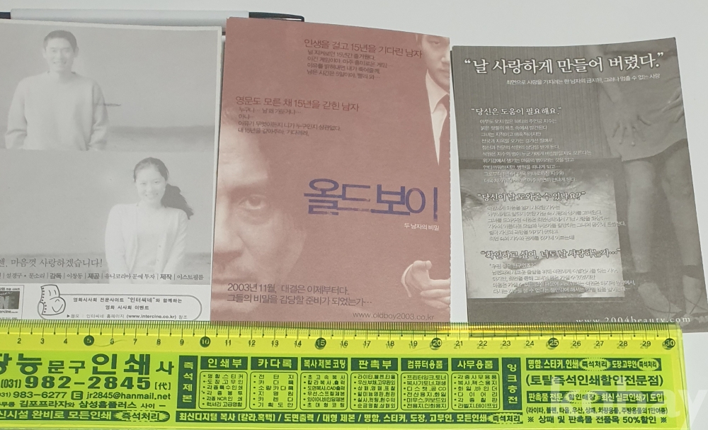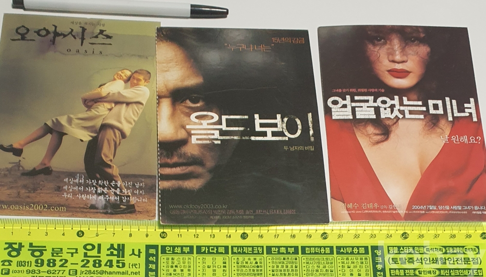 화제의 문제작 올드보이, 설경구 주연 이창동감독의 오아시스 김혜수주연 얼굴없는 미녀 영화 엽서3점..