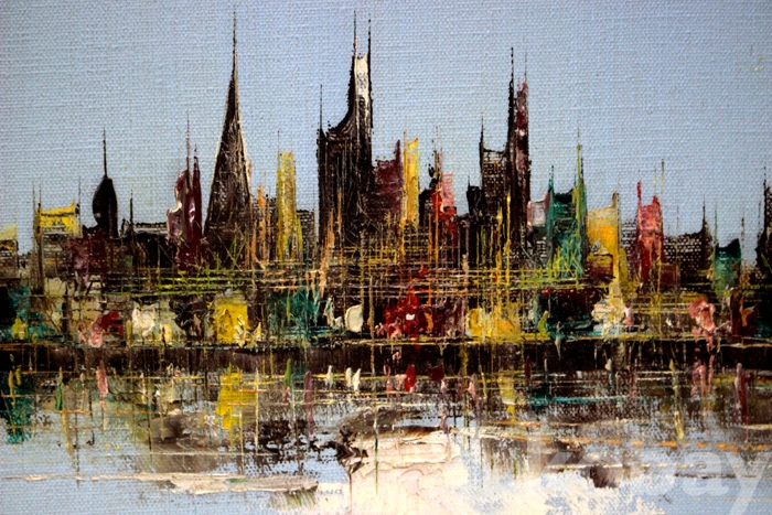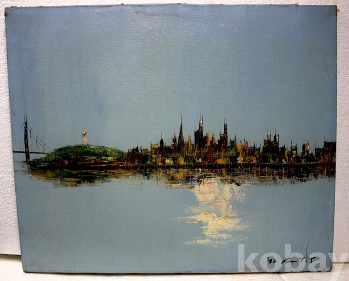 (유화) 82년 Kim Y J의 작품 - 빌딩이 가득한 강가의 풍경 (12F)