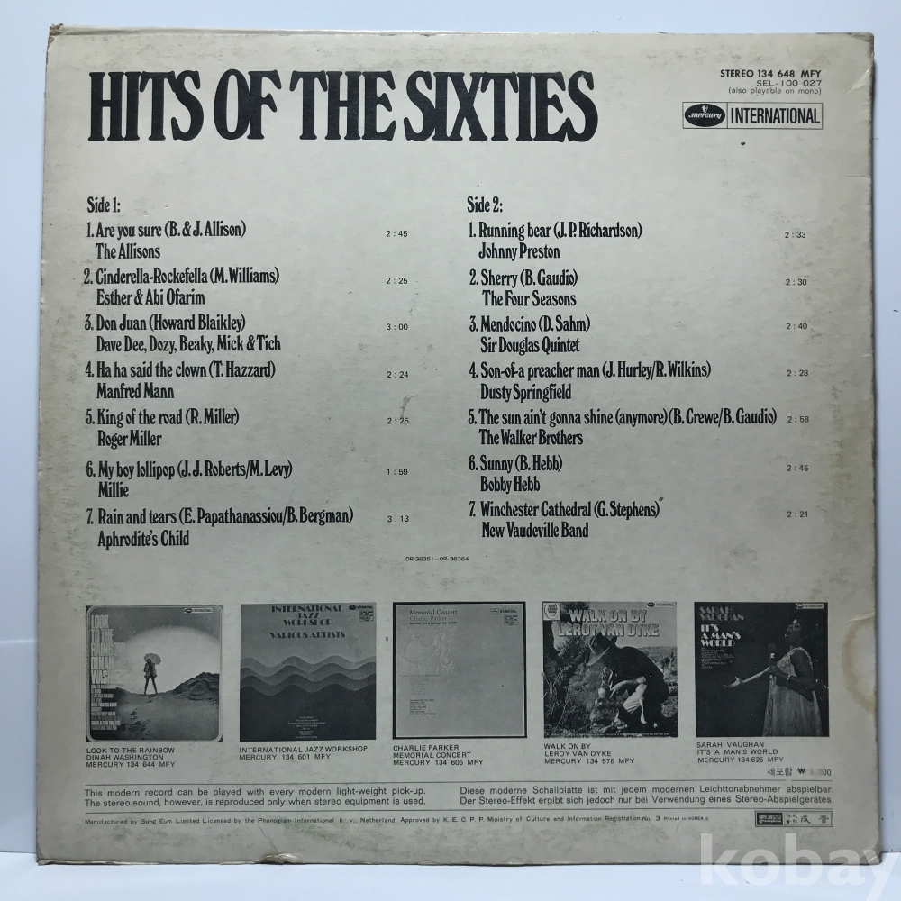 LP 490-7 HITS OF THE SIXTIES . 자켓 EX 알판 EX 72 년 국내반