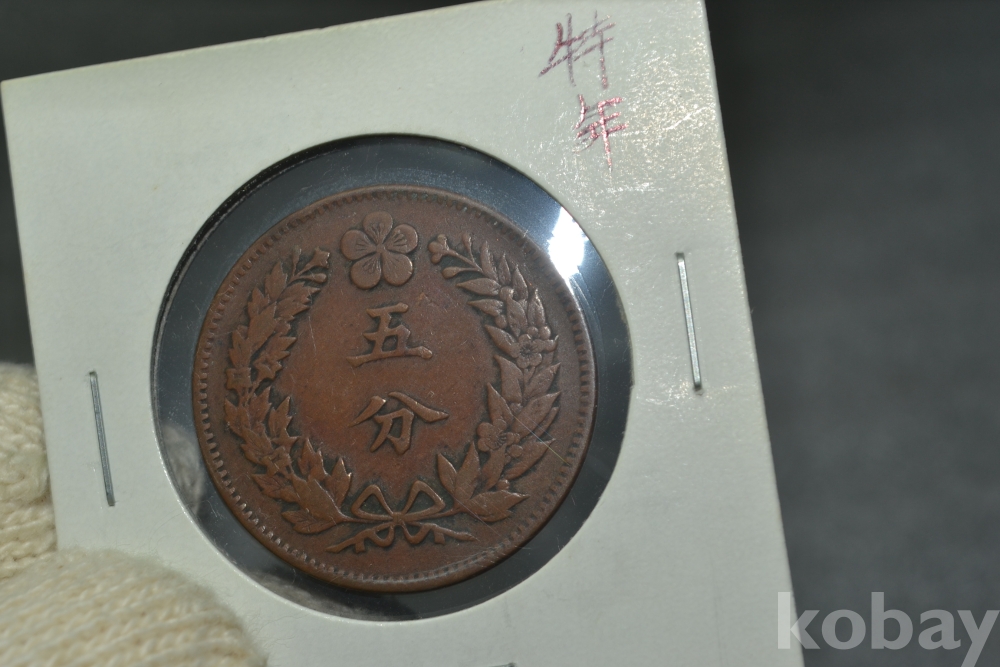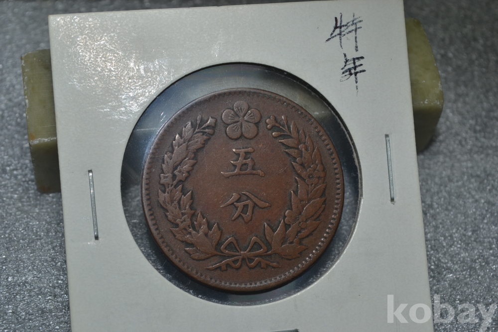 " 매우 귀중한 왕특년도~!! 희소종류 개국502년도 큰글씨체 대자(大字) 오푼~ 매우 귀한종류 ".. " 조선 개국502년(1893년)(대자) 5푼(오푼) 청동화 " .. 이화장 진품~ 조선말 구한국 근대전 / 도안문양 좋은 보존상태