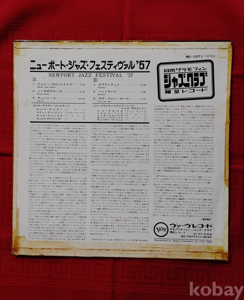 Cecil Taylor & Gigi Gryce & Donald Byrd 앨범입니다 / 트랙은 별도로 제공하지 않습니다 / Ex+