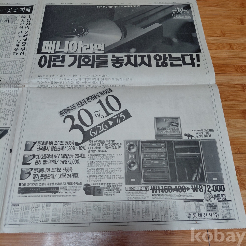 롯데매니아 음향기기 광고 92년6월30일 올려드립니다