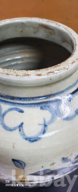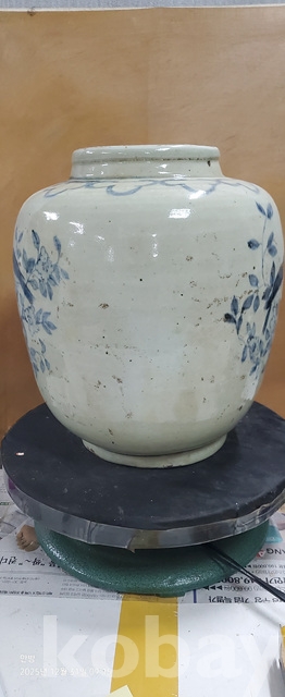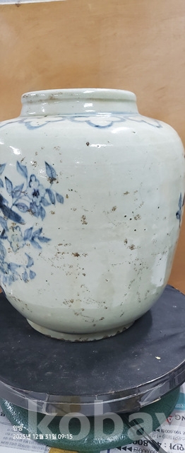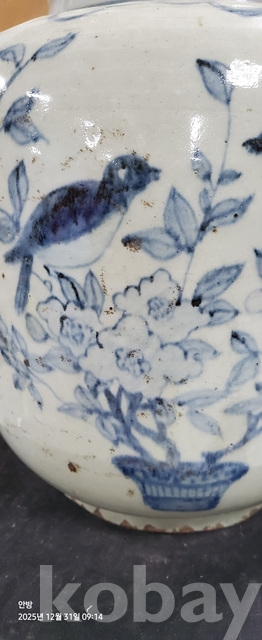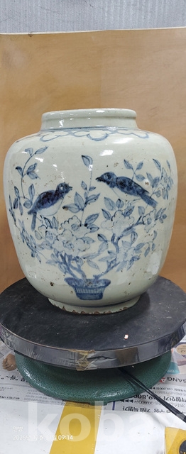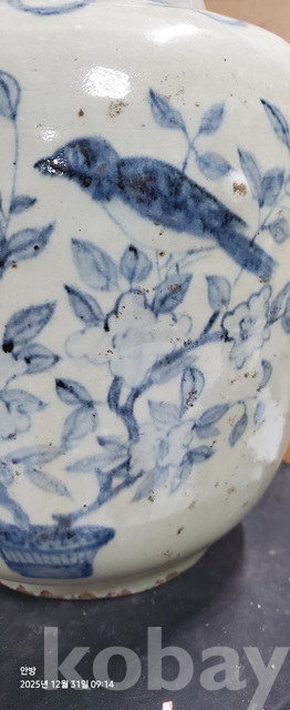 바-33.오래된 매화문화조도문양청화백자 항아리